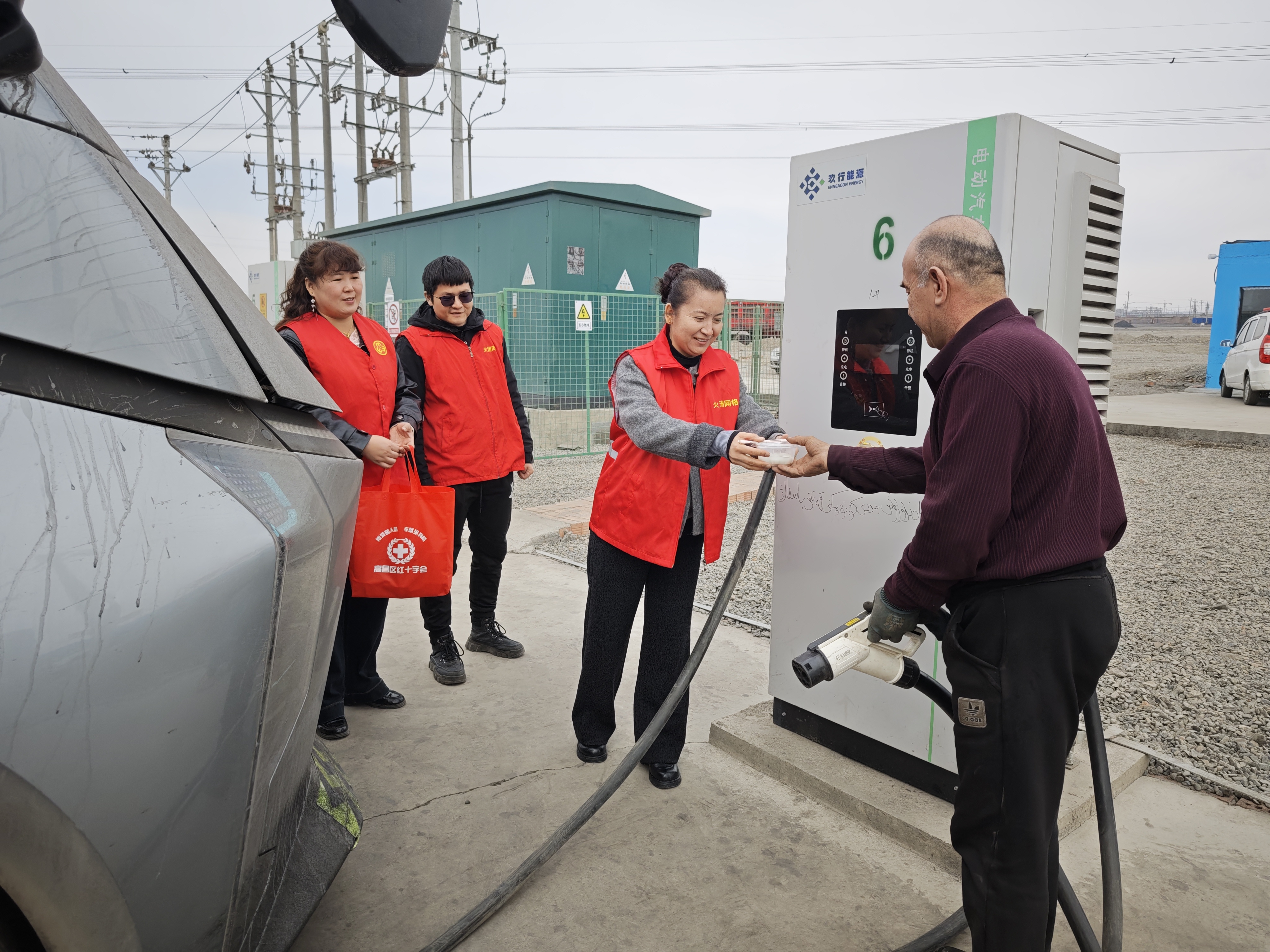高昌区大河沿镇复兴社区联合“益企跑”志愿服务队走进“司机之家”向司乘人员送上汤圆。