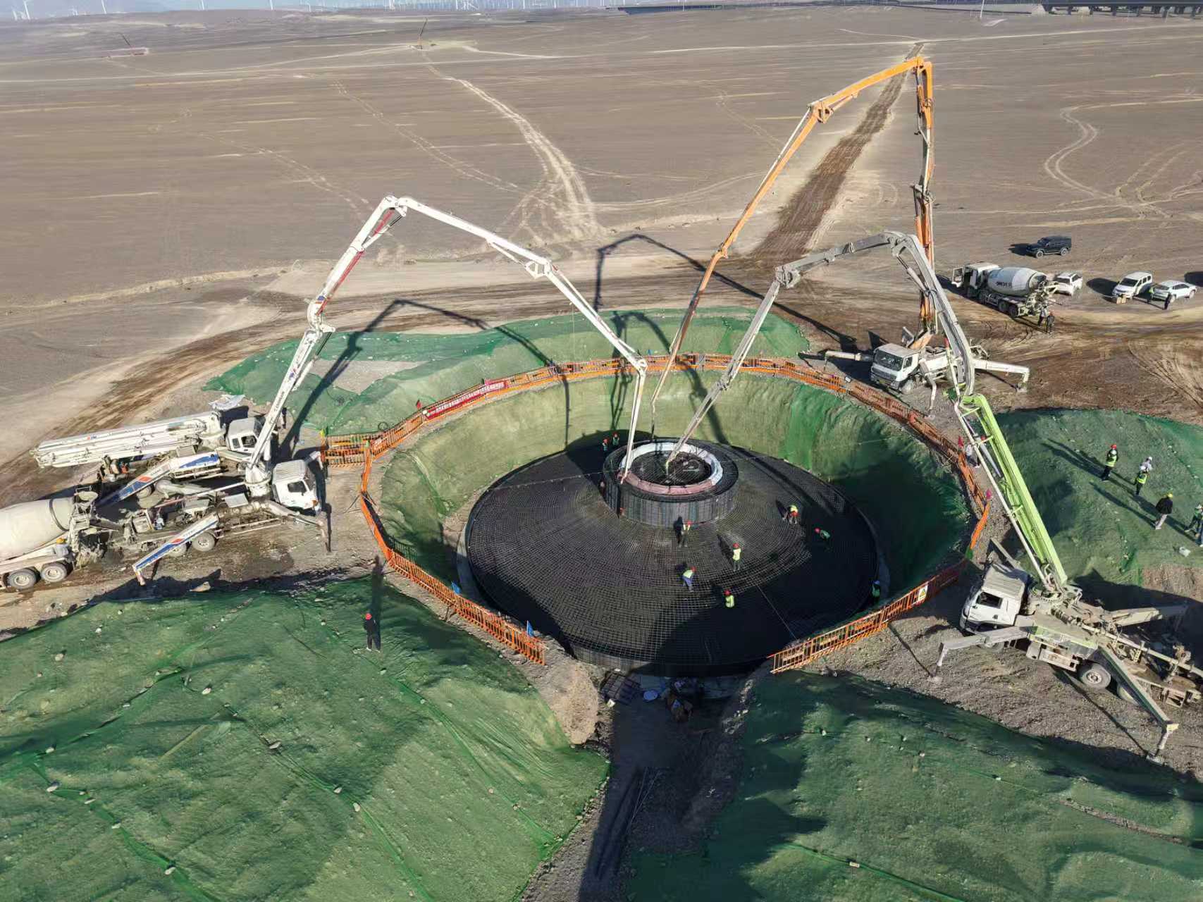 新越吐鲁番市高昌区75万千瓦风电项目现场(航拍)。