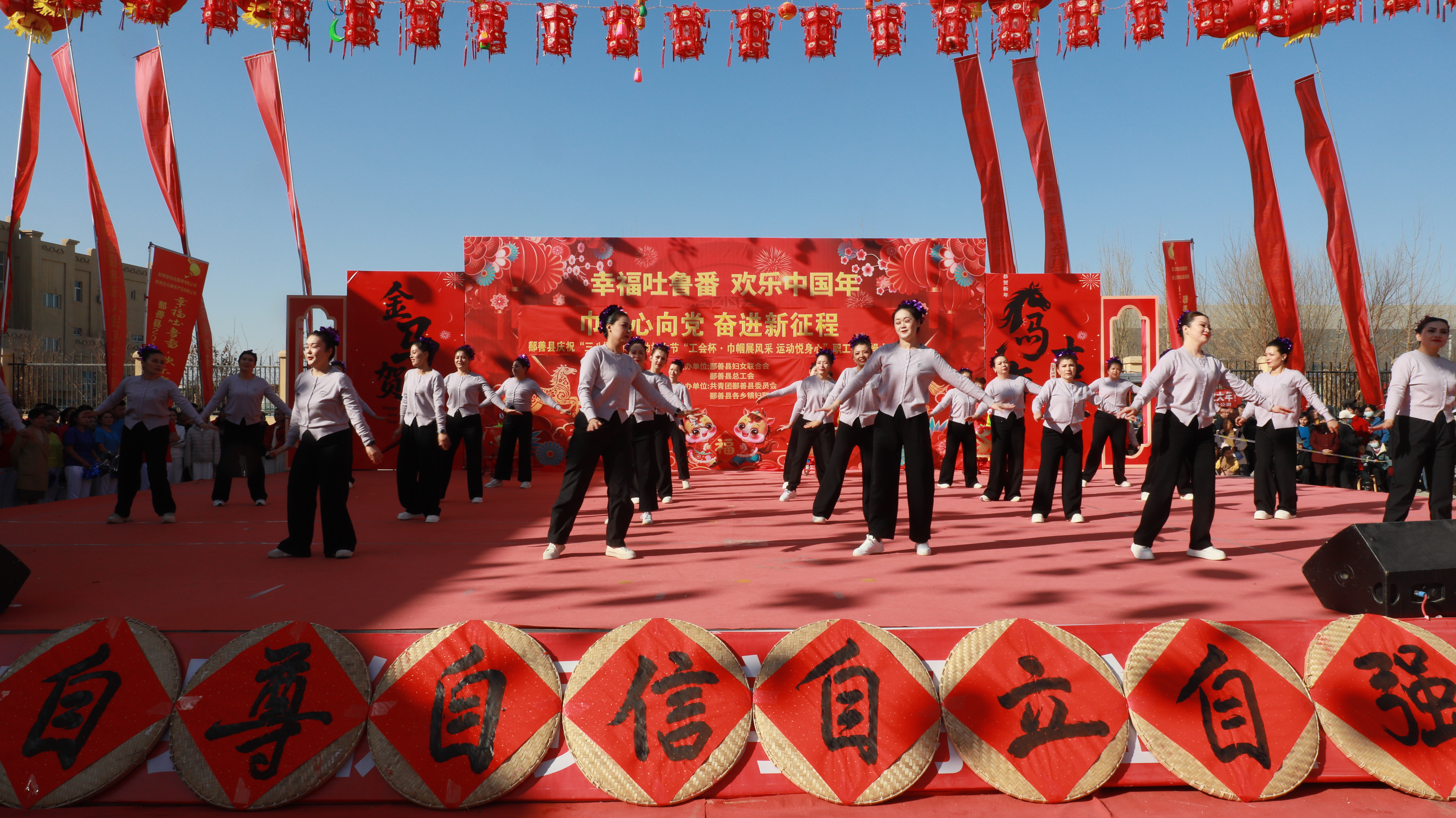 吐鲁番市融媒体中心讯 3月4日,在第116个“三八”国际劳动妇女节来临之际,鄯善县年货大集热闹非凡,“巾帼心向党 奋进新征程”职工健美操比赛火热开赛。
