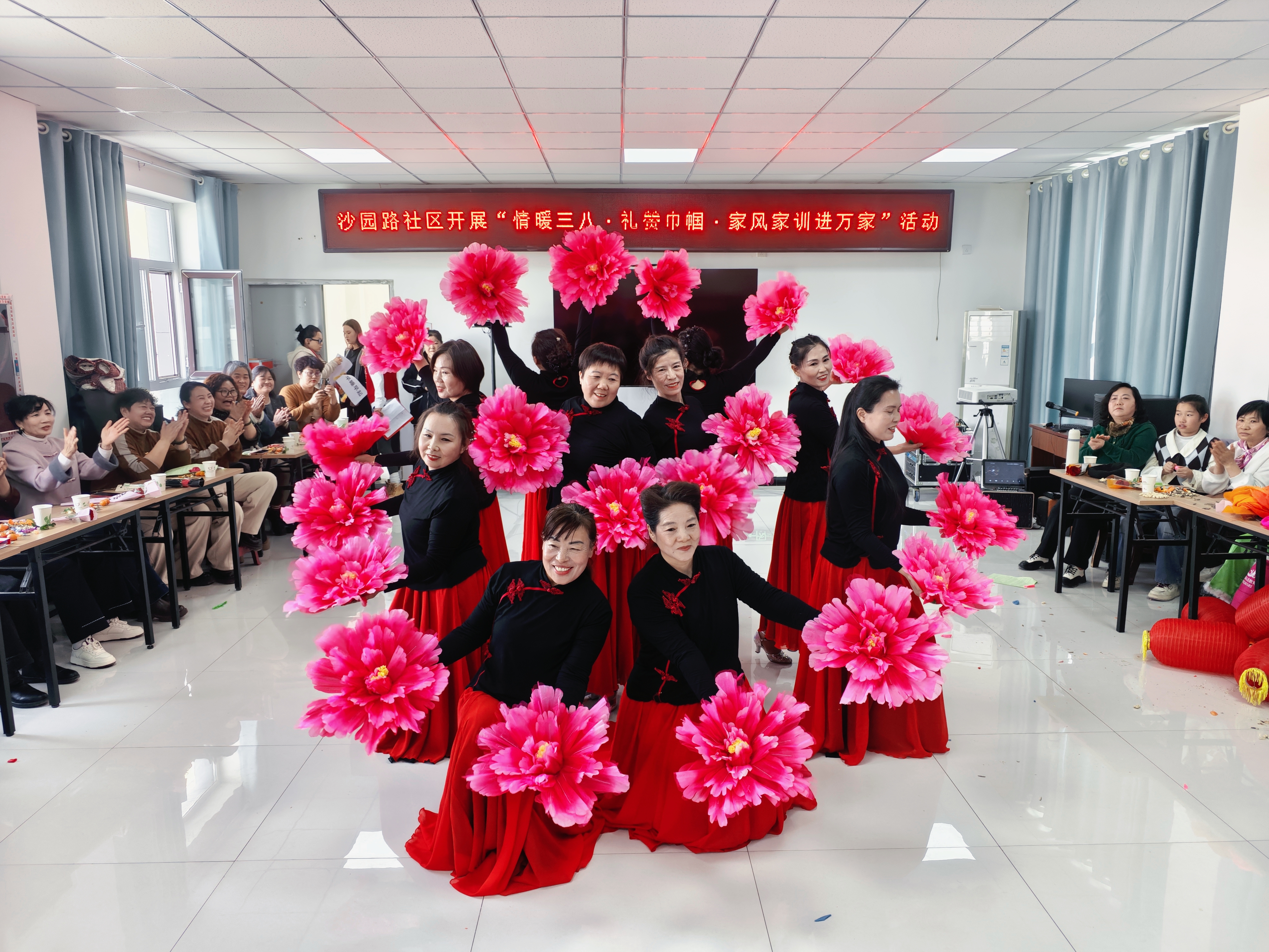 3月6日,鄯善县鄯善镇沙园路社区组织开展“巾帼绽芳华·家风润万家”活动,女性居民欢聚一堂,共庆佳节。图为舞蹈表演。