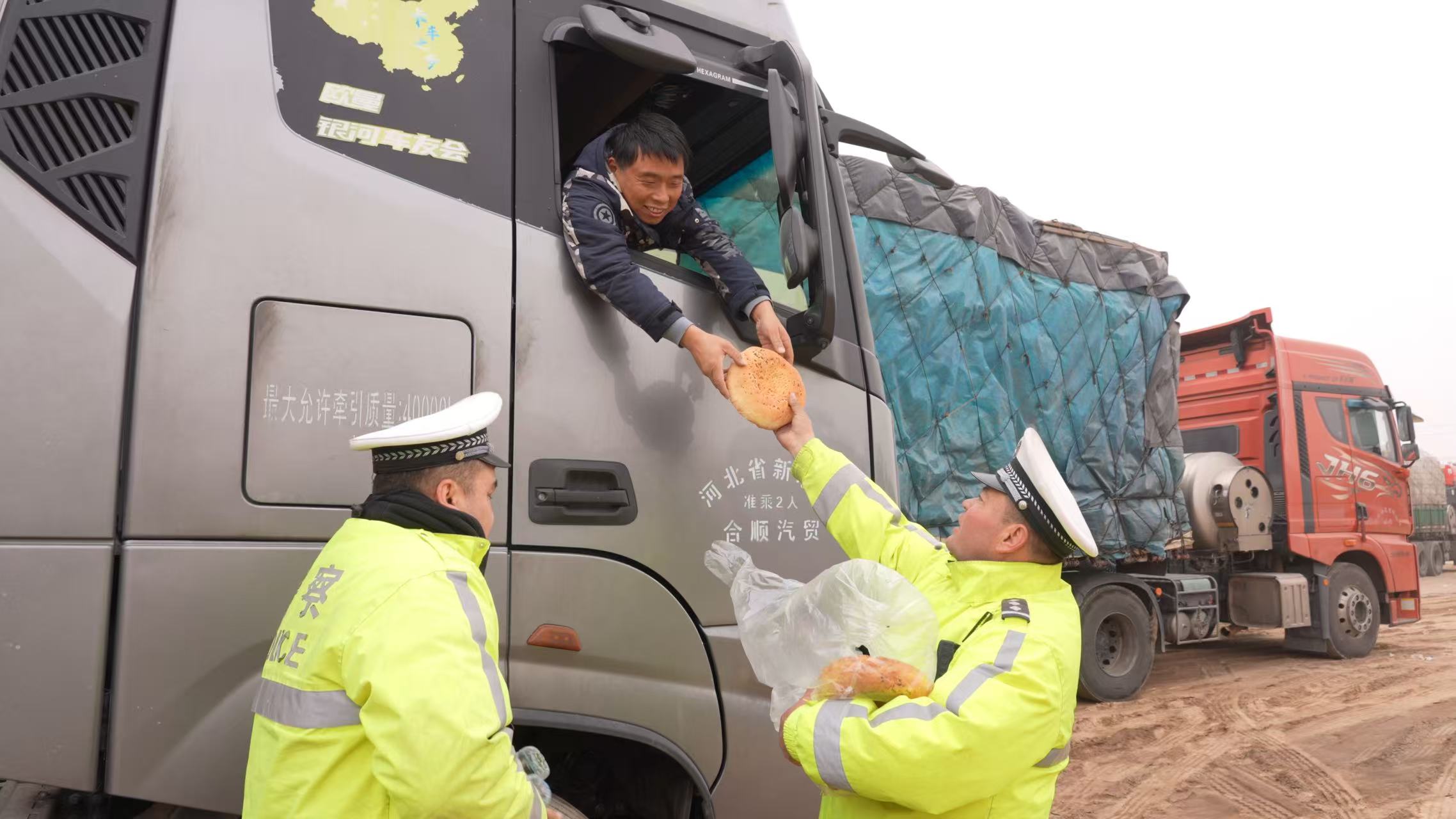 与此同时,鄯善县部分路段也因大风、大雾实行临时交通管制。公安交警部门全员上路,将800余辆滞留车辆引导至安全区域。执勤交警在巡逻中主动帮助货车驾驶员重新绑扎、加固倾斜的货物,排除安全隐患。针对滞留司乘人员的需求,交警还及时送上矿泉水、馕等物资。来自河南、贵州等地的驾驶员纷纷对交警的暖心帮助表示感谢。