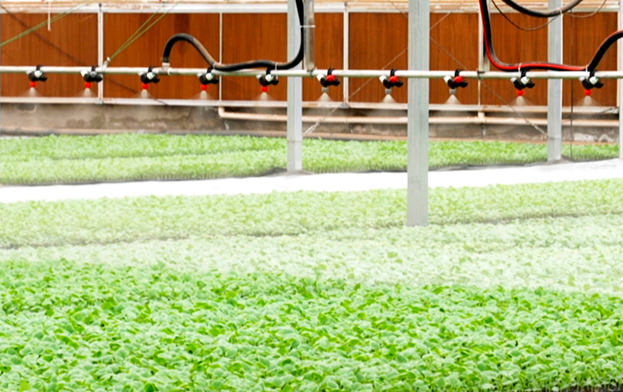 新疆绿秀禾农业科技有限公司种苗培育中心大棚内绿意盎然。