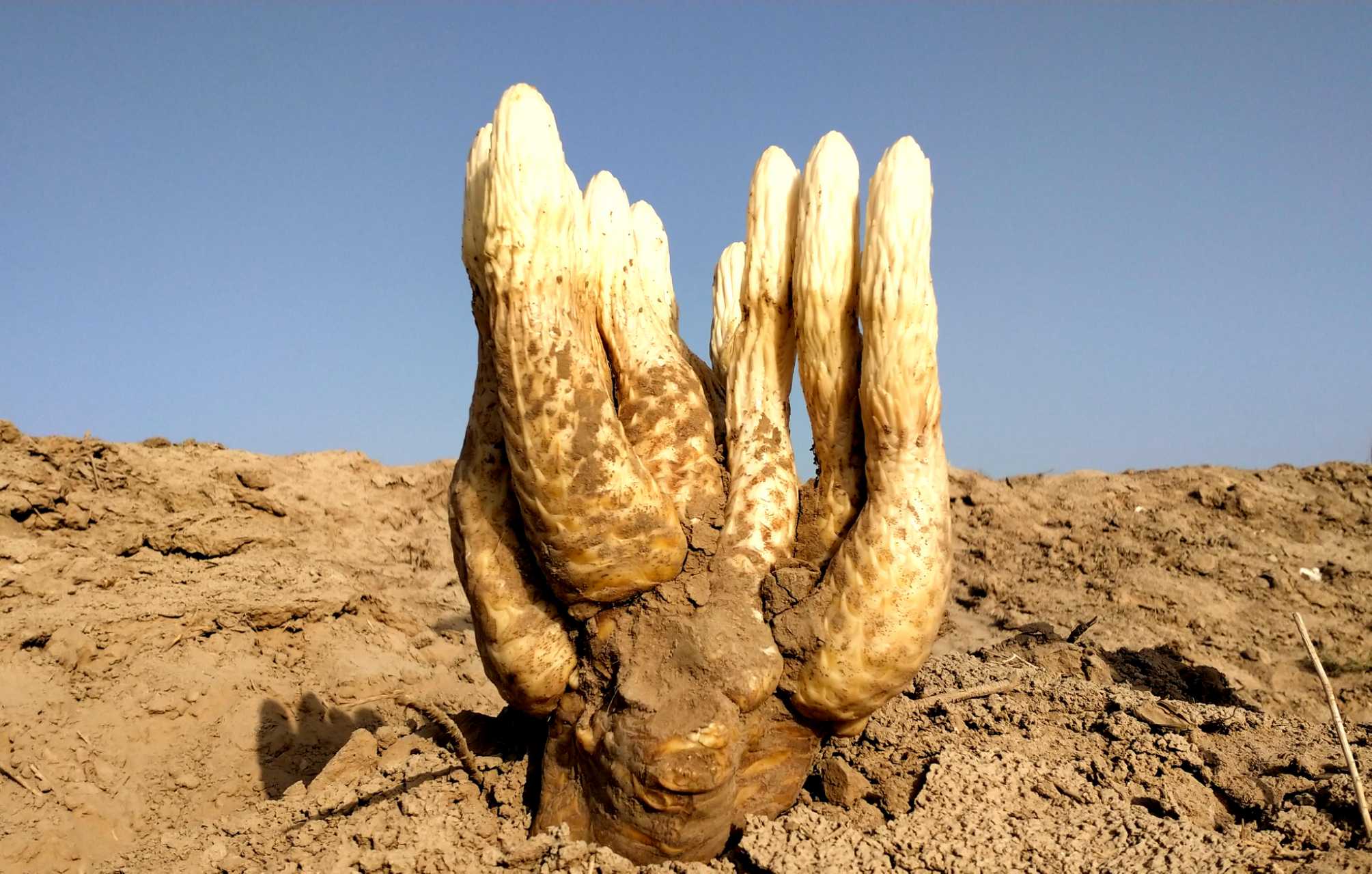 鄯善县迪坎镇戈壁沙土里的大芸(肉苁蓉)。