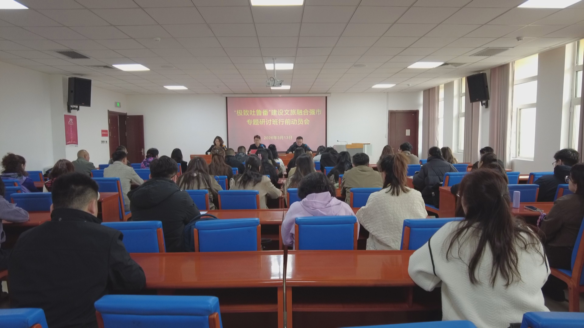 吐鲁番市融媒体中心讯(文/图 记者 艾尼娃)3月13日,“极致吐鲁番”建设文旅融合强市专题研讨班行前动员会在市委党校举行。来自市直相关部门、区县文旅单位、重点景区、乡村旅游重点乡镇及文旅企业的40名业务骨干赴湖南开展为期7天的学习培训。