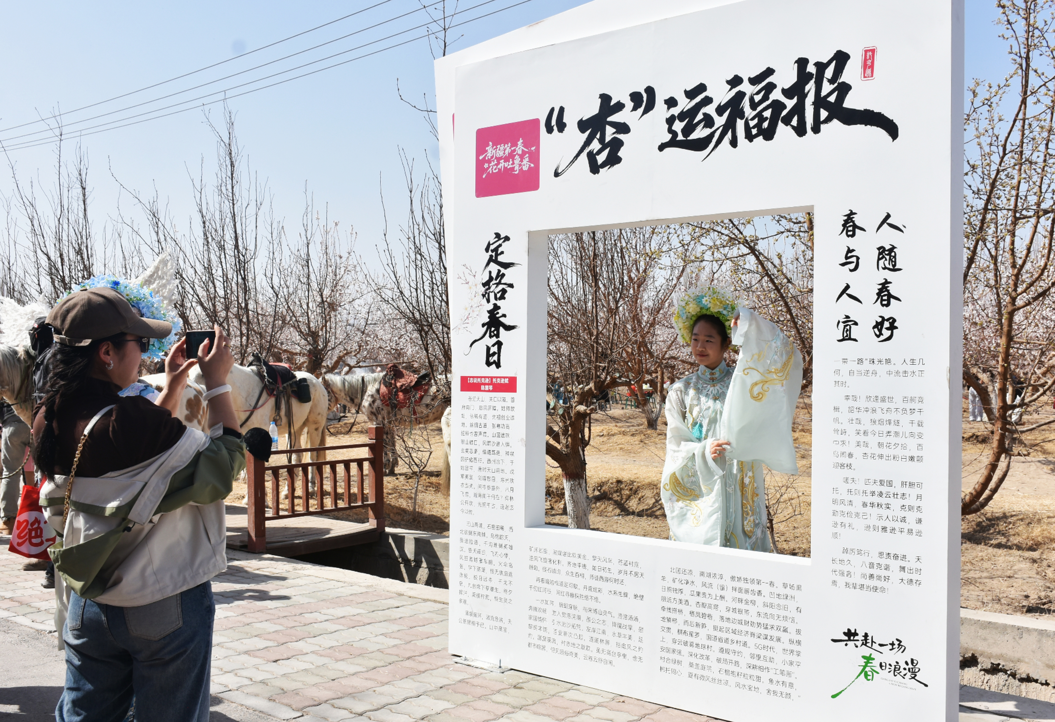 游客在“杏”运福报打卡点拍照。吐鲁番市融媒体中心记者 加帕尔 摄