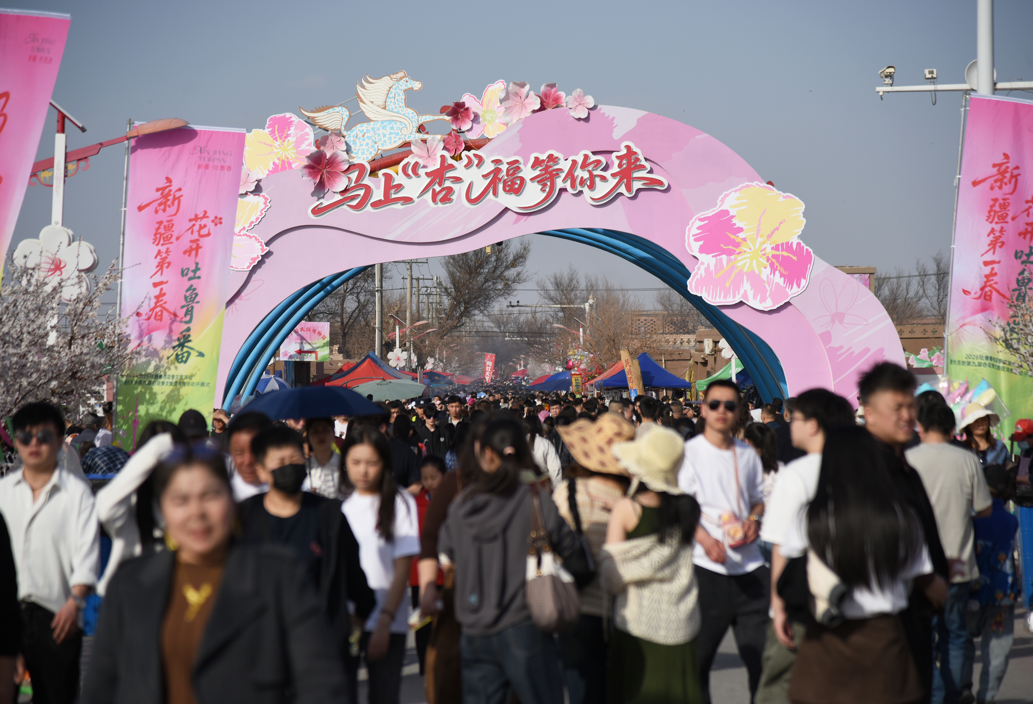 吐鲁番市融媒体中心讯(记者 李彦强 刘字昂)春风拂火洲,杏花满庭芳。3月20日,“新疆第一春 花开吐鲁番”马上“杏”福等你来2026吐鲁番杏花季系列文旅消费活动在托克逊县夏镇南湖村开幕。八方游客循着春光与花香纷至沓来,在这场集赏花游览、互动体验、民俗展示、消费惠民于一体的春日盛宴中,解锁“从看花到玩花”的全新文旅体验,共赴一场与春天的浪漫邂逅。