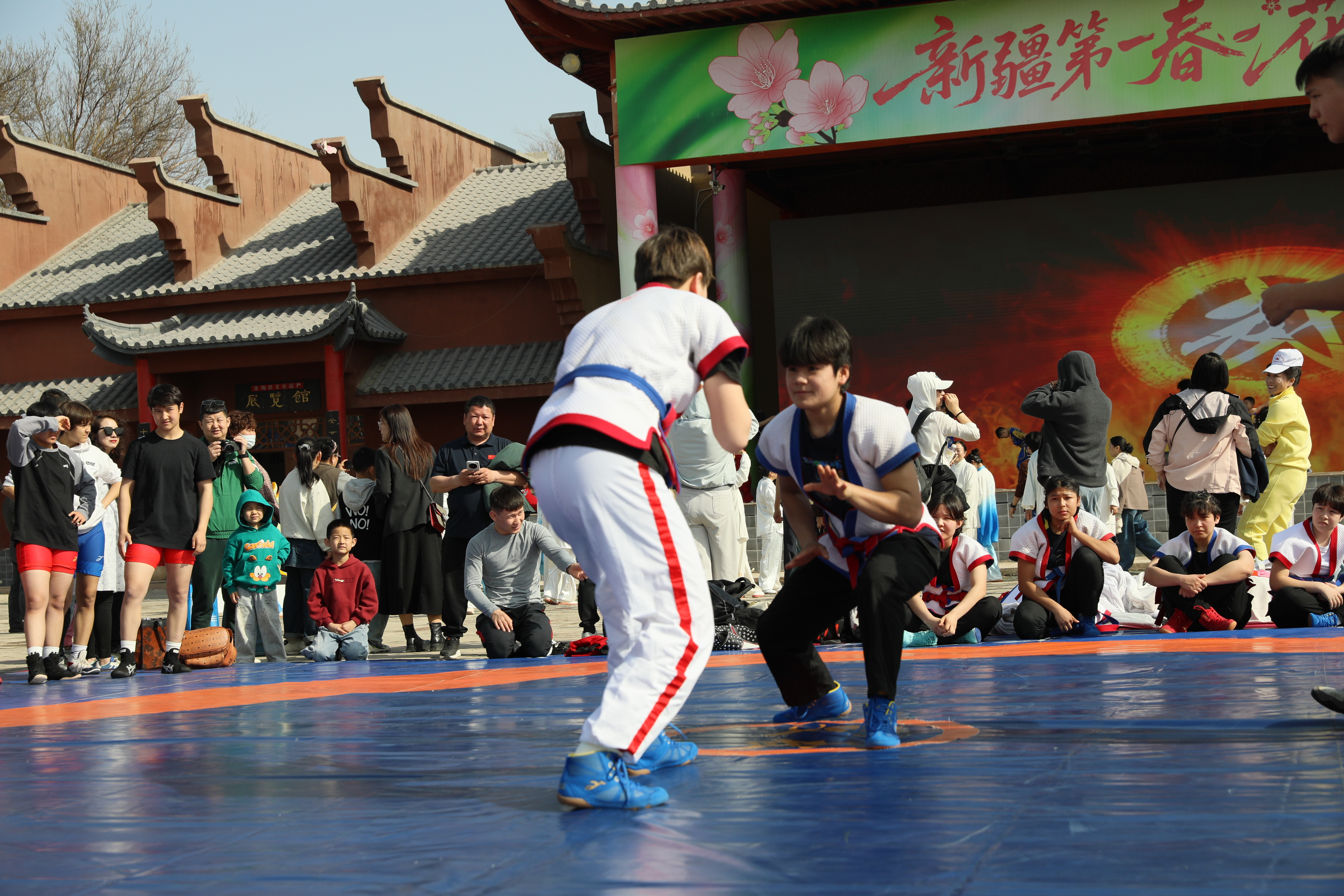 吐鲁番市融媒体中心讯(记者 买迪努尔 通讯员 韩栋 宋建泽)春分时节,杏花初绽。3月20日,“新疆第一春·花开吐鲁番”中国式、民族式摔跤全疆邀请赛在托克逊县夏镇南湖村火热开赛。来自全疆的40名摔跤健儿齐聚一堂,以赛会友、以技传情,为游客和本地群众献上了一场热血沸腾的体育盛宴。