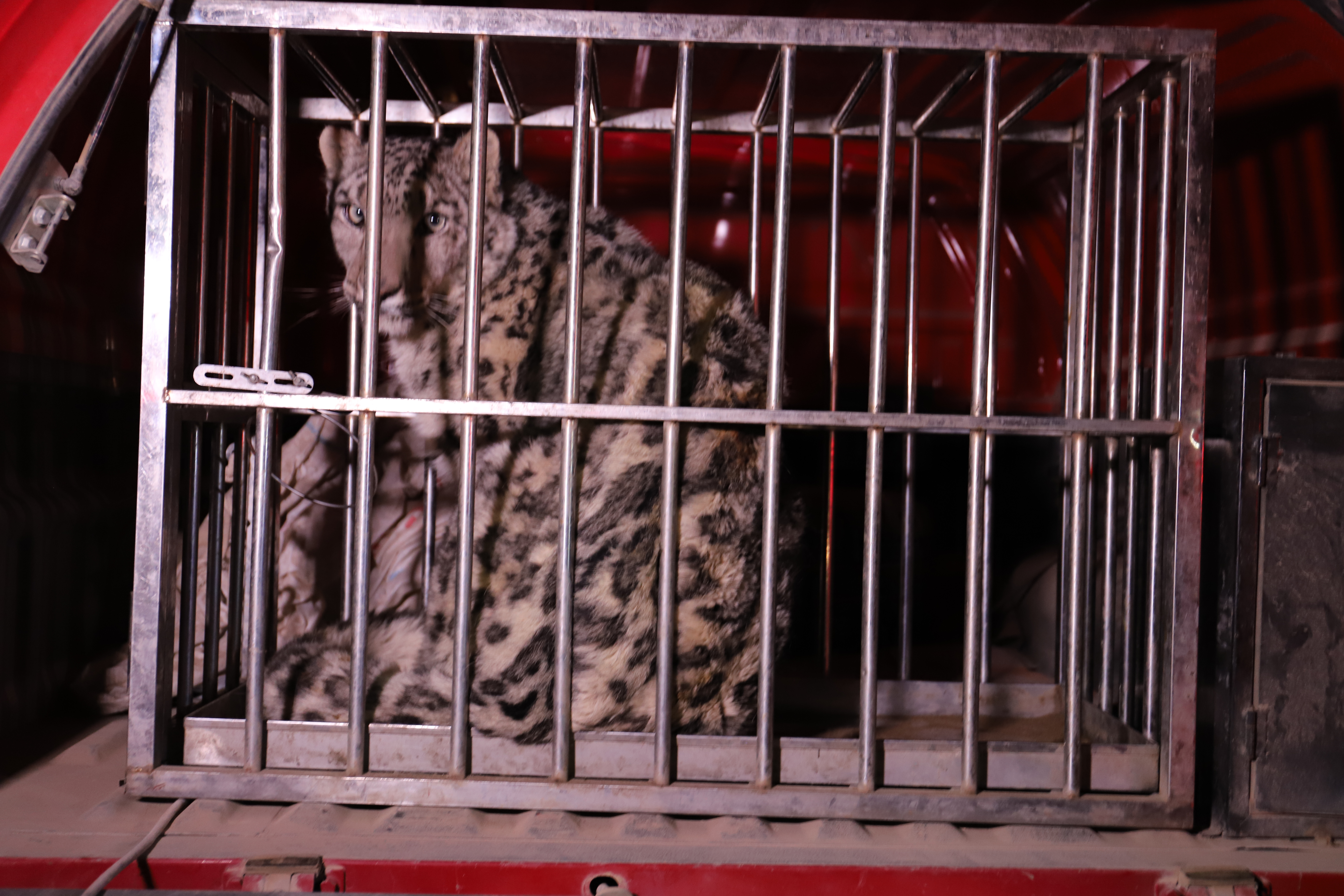 初步检查发现,这是一只国家一级保护动物,5至7龄的成年雌性雪豹,仅存在轻微虚弱、脱水情况,无明显外伤。受本地救助条件限制,雪豹被连夜移交至自治区野生动物救护中心开展专业救治。