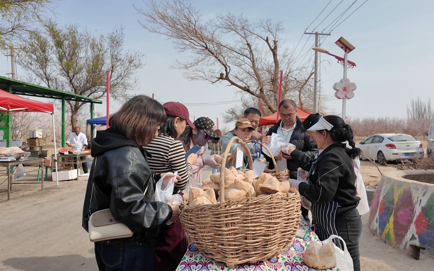 3月24日,夏镇南湖村热闹不已。村民吐尔逊阿依·买合木提的馕坑前来了不少游客,刚出炉的馕香气扑鼻。乌鲁木齐游客邓萍品尝后赞不绝口,称口感软糯有营养,还买了不少。