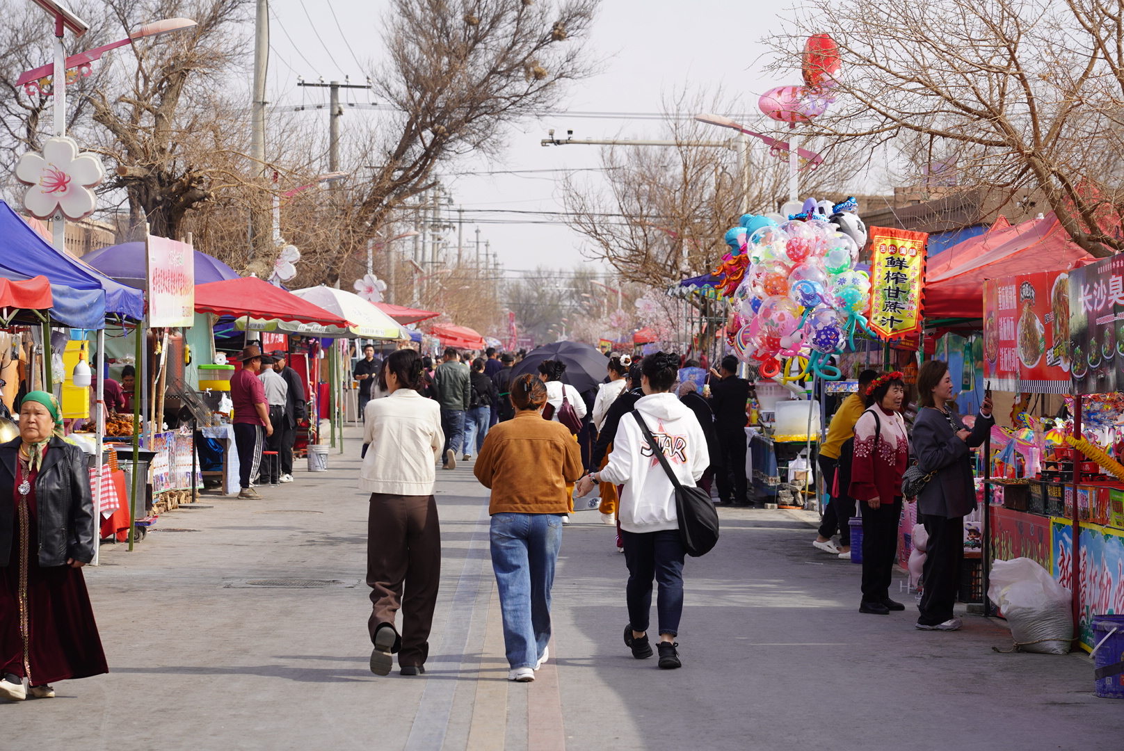 托克逊县在去年基础上,将一条消费街区拓展升级为2条,大大拓宽了农户经营空间。新街区投用后人流量大增,村民艾合买提江•买买提将院子改造成餐馆,主营特色快餐,生意红火,杏花季开幕当天营收就超1万元。他还出租二楼给摆摊商户,增收3000元。他开心地说道,新街区带来更多游客,生意格外好,明年打算升级餐馆多挣些钱。