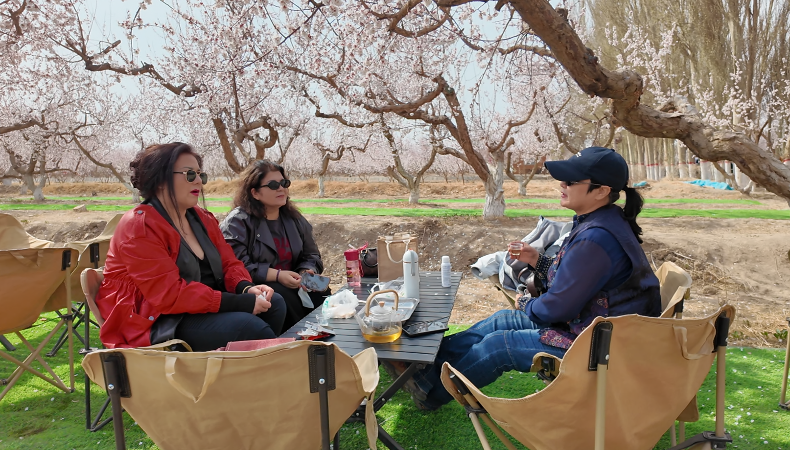 “在杏花树下喝下午茶,感觉特别悠闲惬意,杏花景致优美,茶汤清爽回甘,体验感太棒了。”乌鲁木齐游客史美丽说道。