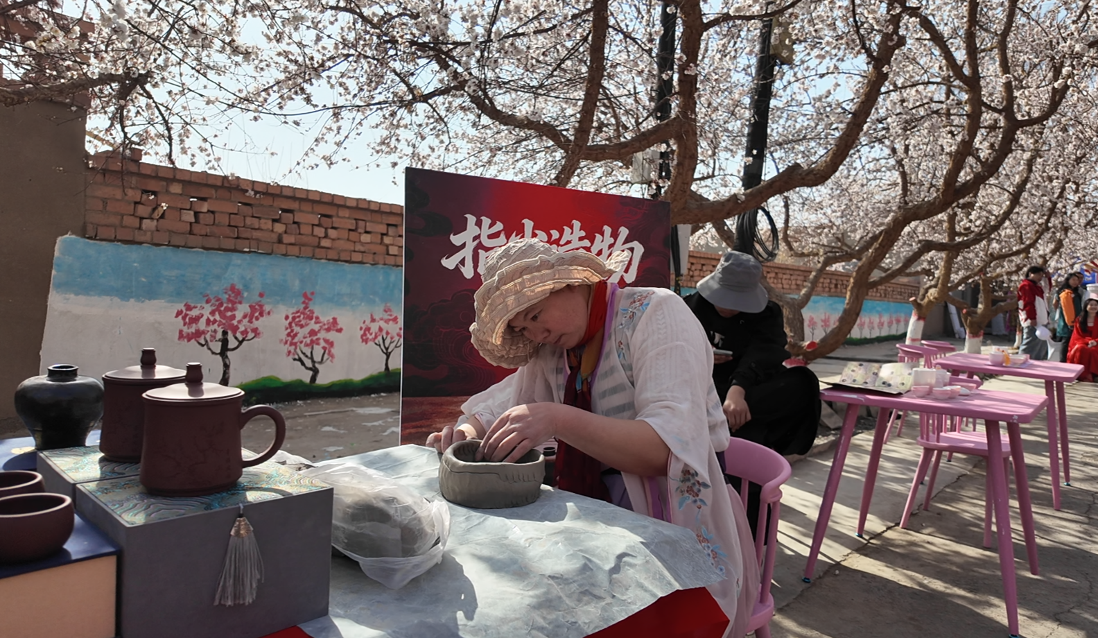3月21日举办的“杏韵雅集·艺启童心”文趣雅集研学区活动,更是紧密围绕杏花季文旅特色,融合文化、科技、非遗等多元内容,为市民游客带来了一场沉浸式的文化研学盛宴。游客热情地参与各项体验活动,与古装NPC趣味互动,感受传统文化的魅力,还在扎染、漆扇、陶艺等体验中动手实践、享受创作的乐趣,也为托克逊县杏花季增添了浓郁的教育与文化底蕴。
