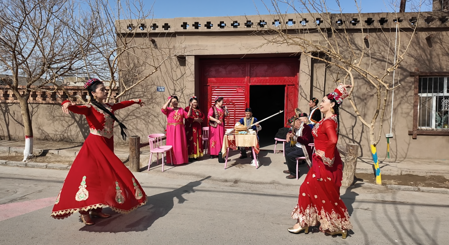 民间艺人在南湖村表演节目。吐鲁番市融媒体中心记者 买迪努尔 摄