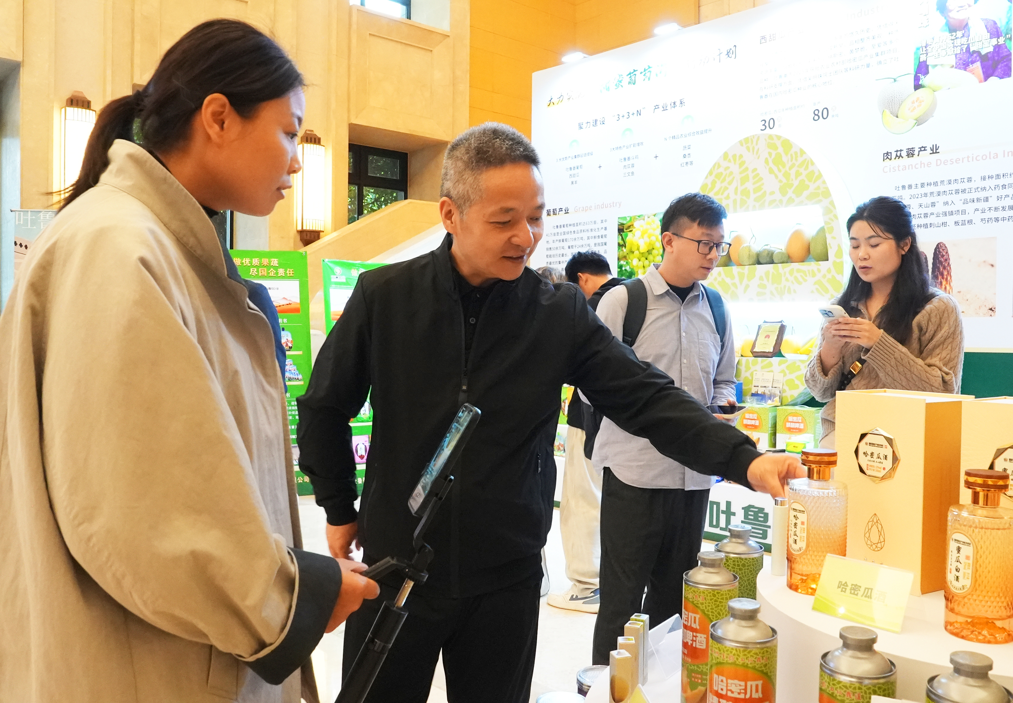 3月27日,工作人员介绍哈密瓜相关产品。吐鲁番市融媒体中心记者 谢懂飞 摄