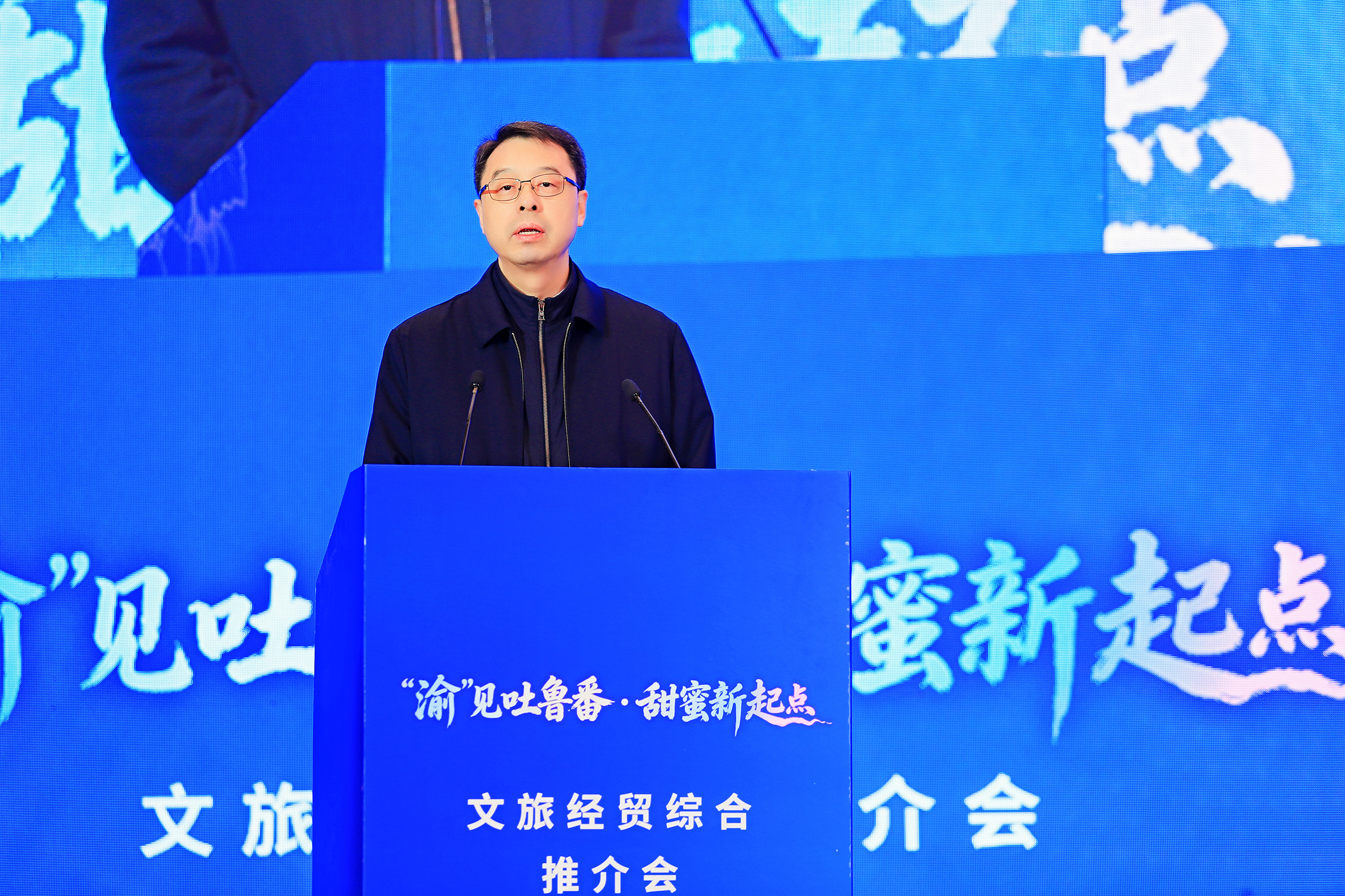 3月27日上午,“‘渝’见吐鲁番·甜蜜新起点”文旅经贸综合推介会在重庆市举行。重庆市政协副主席但彦铮出席活动并致辞。吐鲁番市融媒体中心通讯员 李靖海 摄