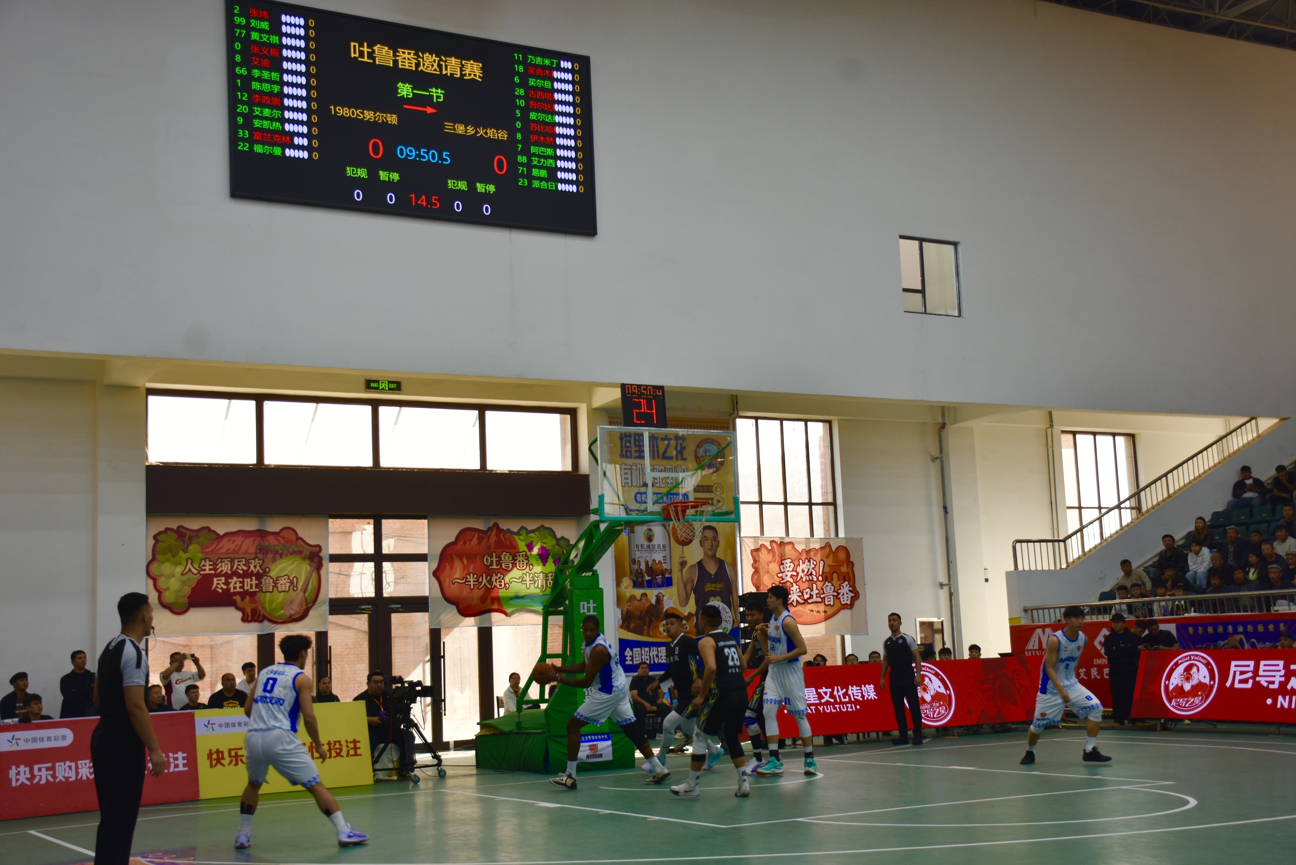 本次赛事由市文旅局指导,高昌区文旅局、市篮球协会联合承办,将持续至4月3日,竞赛项目为五人制男子篮球。开幕式结束后,首日小组赛随即打响。赛场上,1980S努尔顿篮球队与三堡乡火焰谷篮球队展开对决。球员们精神饱满、奋勇拼搏,快速传球、精准投篮、严密防守,每一次精彩配合与得分都赢得现场阵阵喝彩;赛场下,观众热情高涨、呐喊助威,氛围热烈浓厚。