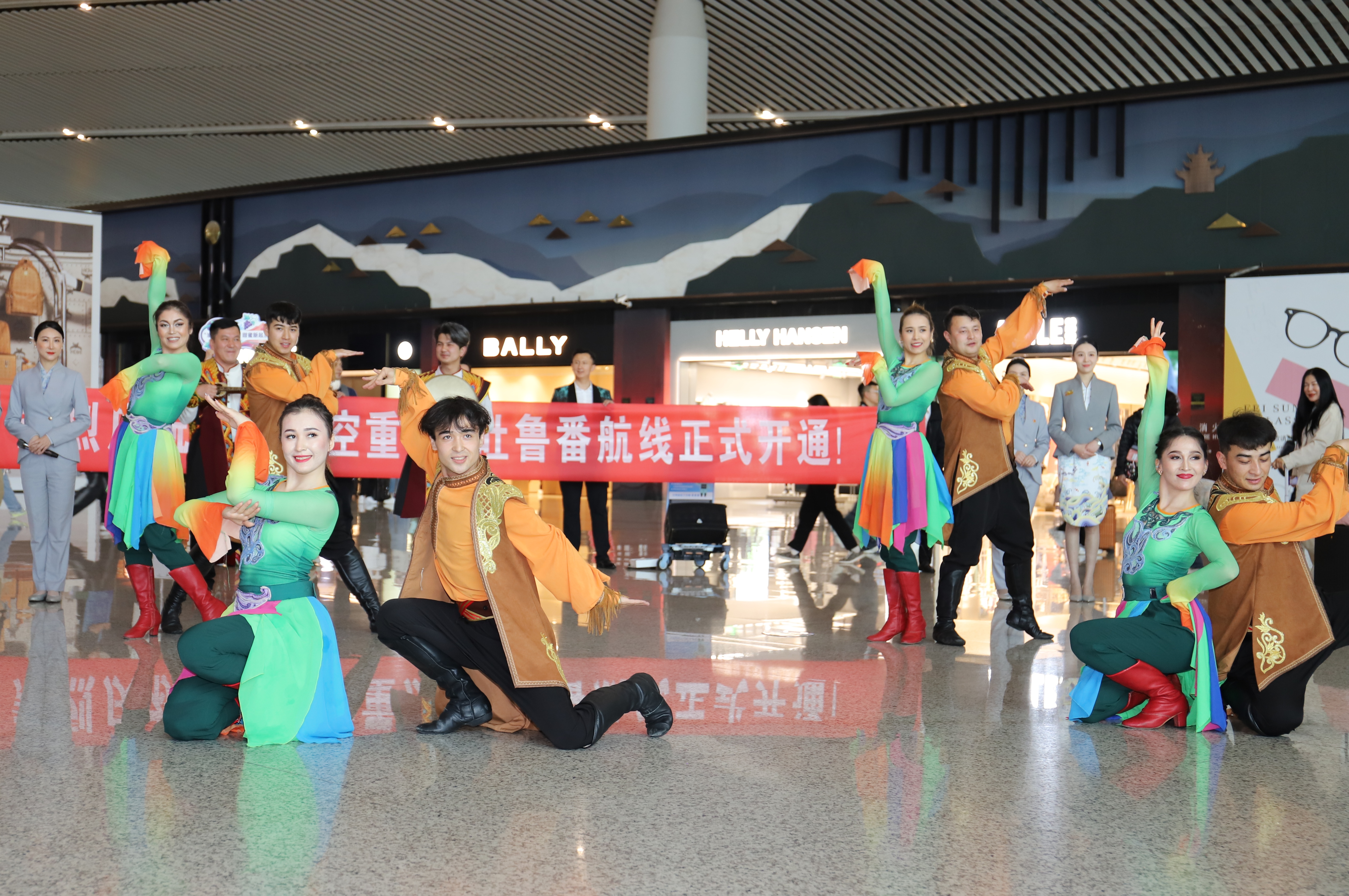重庆江北国际机场候机大厅内,一场精彩纷呈的快闪活动庆祝首航仪式。吐鲁番市融媒体中心记者 李彦强 摄