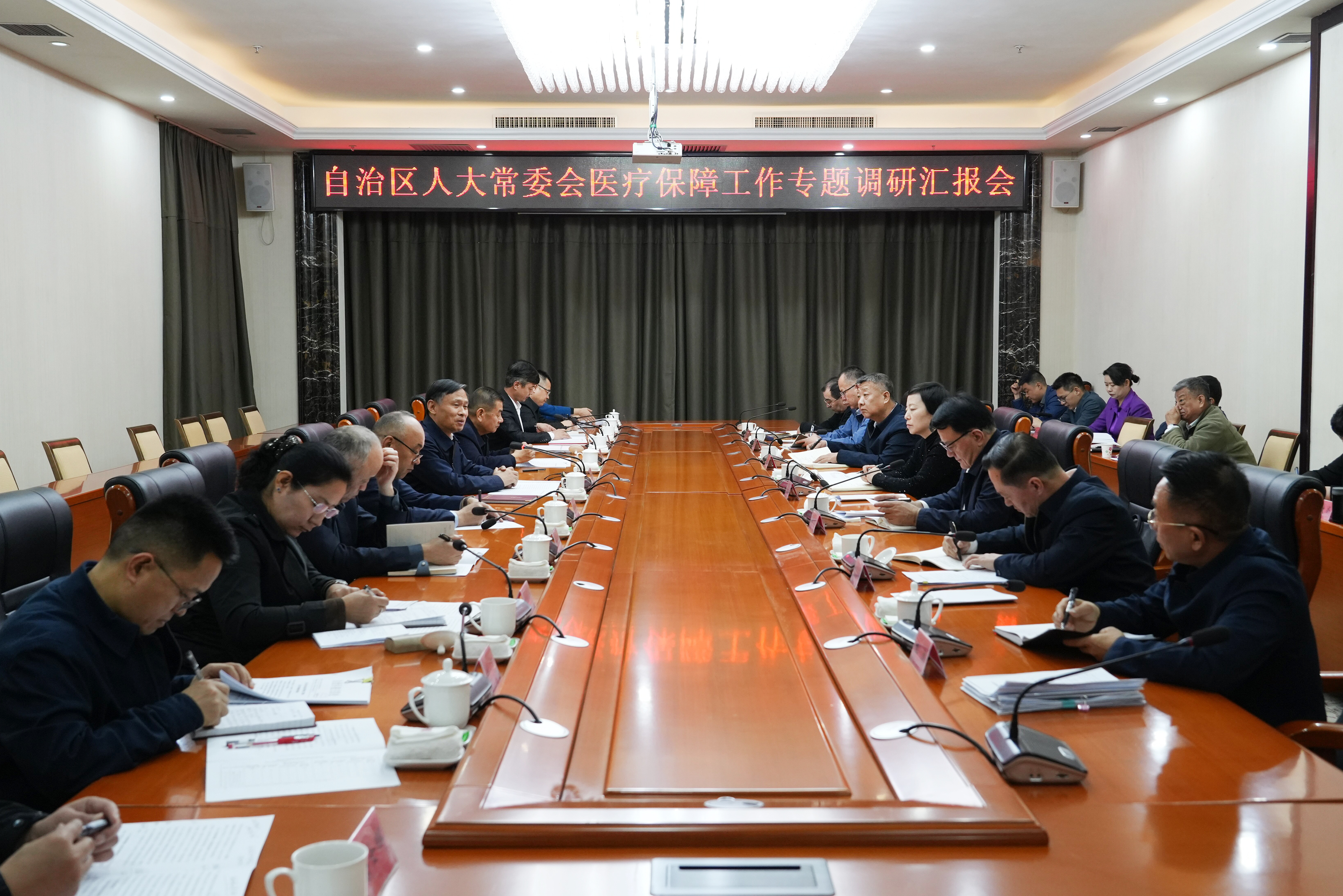 在27日召开的专题调研汇报会上,调研组听取了吐鲁番市人民政府关于医疗保障工作情况的汇报。市医保局、财政局等相关部门及市人民医院、维吾尔医医院等医疗机构负责人,围绕本单位医保工作履职情况发言,并就医保政策优化、基金监管、服务提升、改革推进等方面进行研讨,为进一步完善医疗保障体系、提升保障效能凝聚共识。