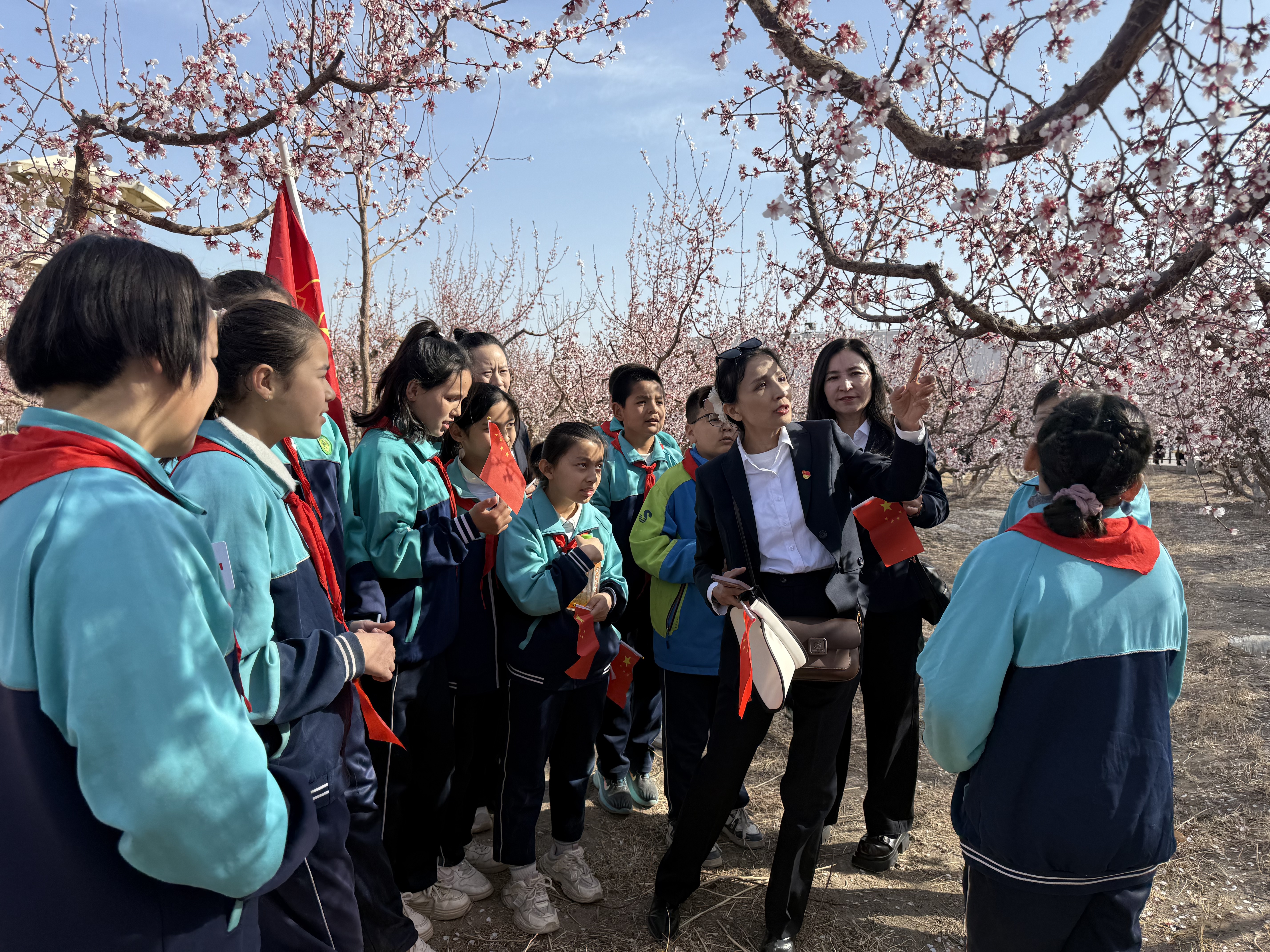 3月28日,“新疆第一春·花开吐鲁番”2026吐鲁番杏花季系列文旅消费活动暨托克逊县第九届杏花季文旅促融合“杏”福嘉年华在郭勒布依乡开斯克尔村启幕。托克逊县教育局打造的“杏韵雅集·艺启童心”研学活动同步开展,成为春日里一抹亮眼的青春底色。