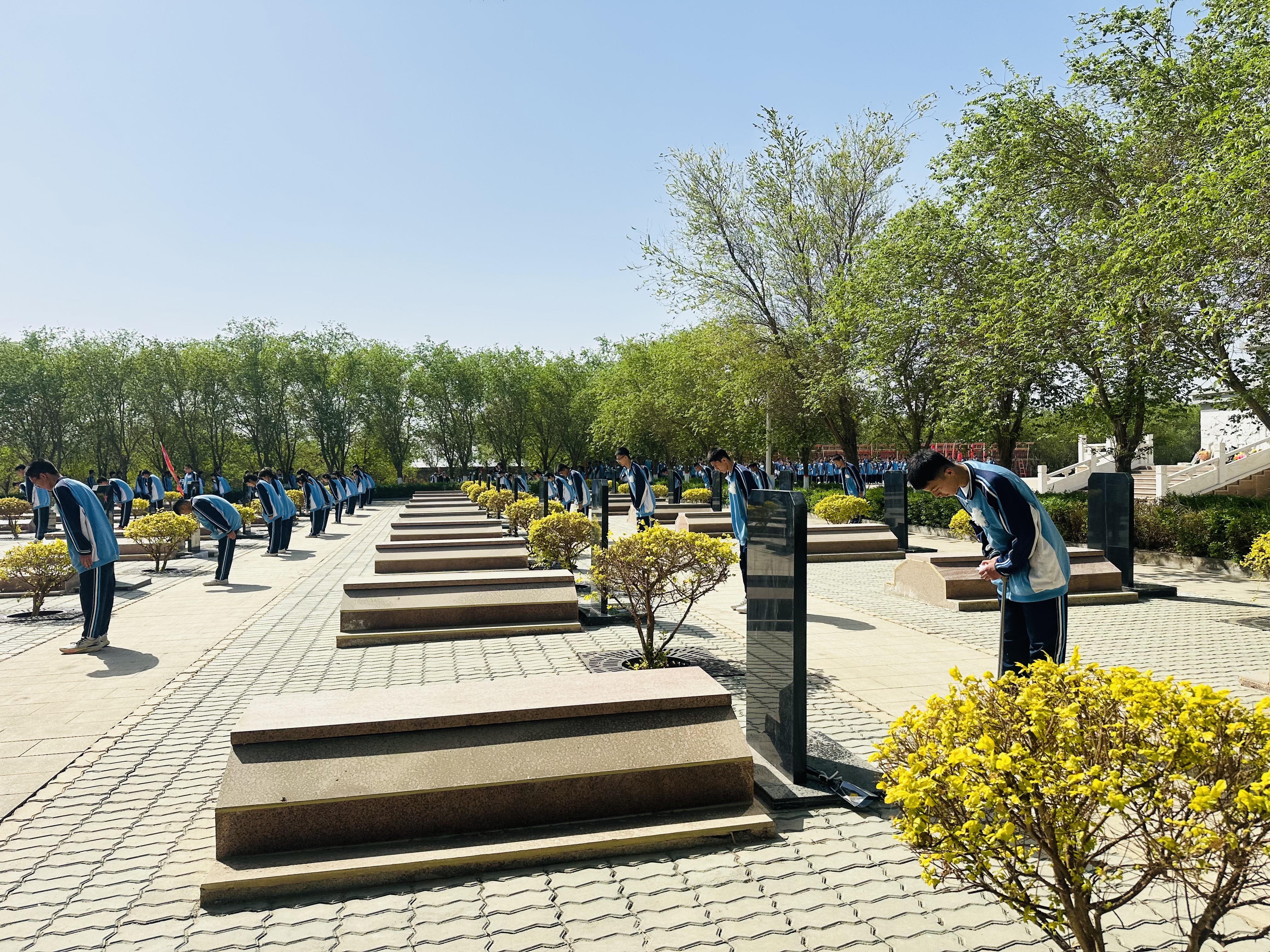 市实验中学师生在吐鲁番烈士陵园祭扫革命先烈。吐鲁番市融媒体中心记者 阿地兰 摄