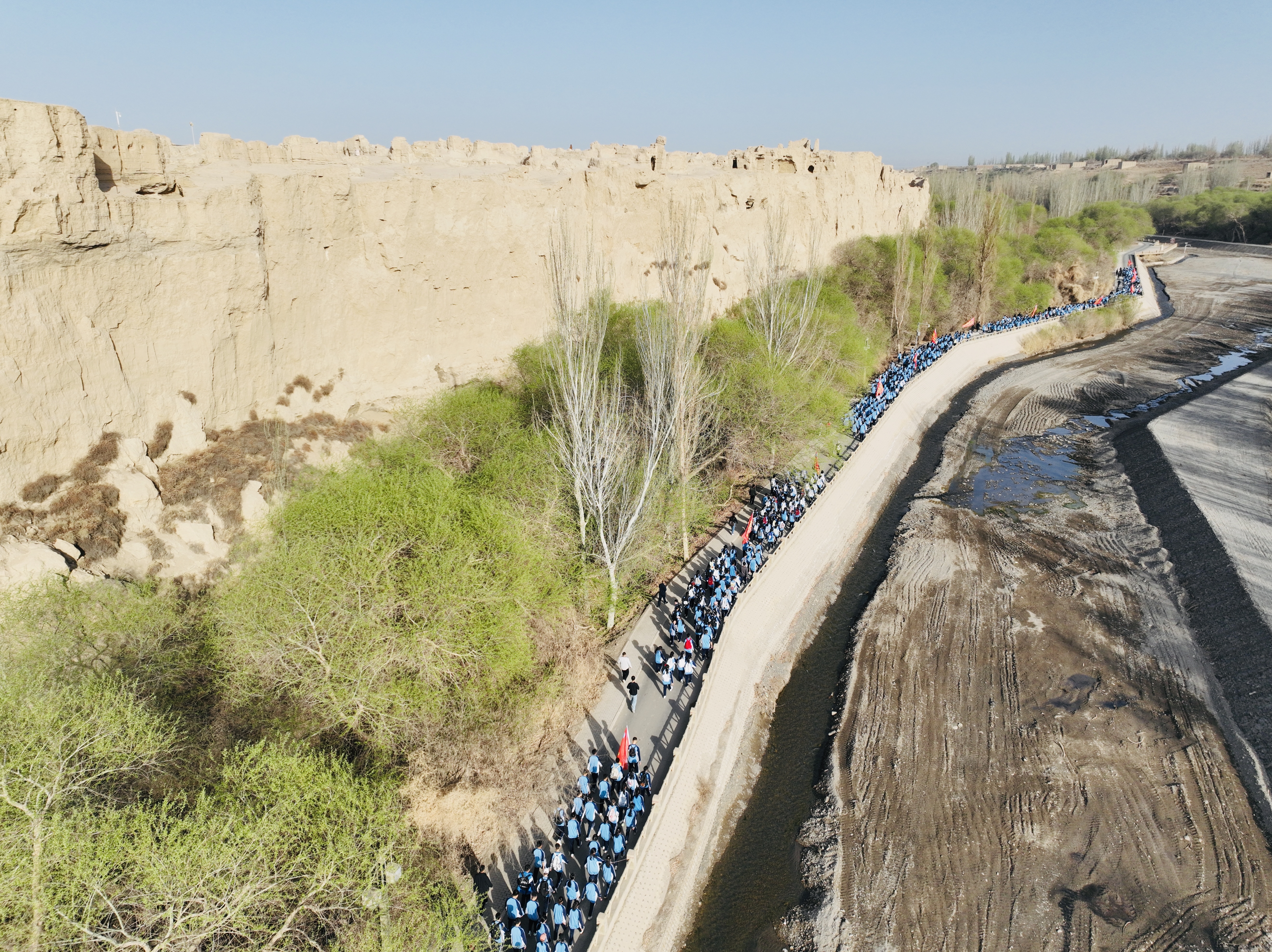 市实验中学师生在交河故城徒步毅行。吐鲁番市融媒体中心记者 阿地兰 摄