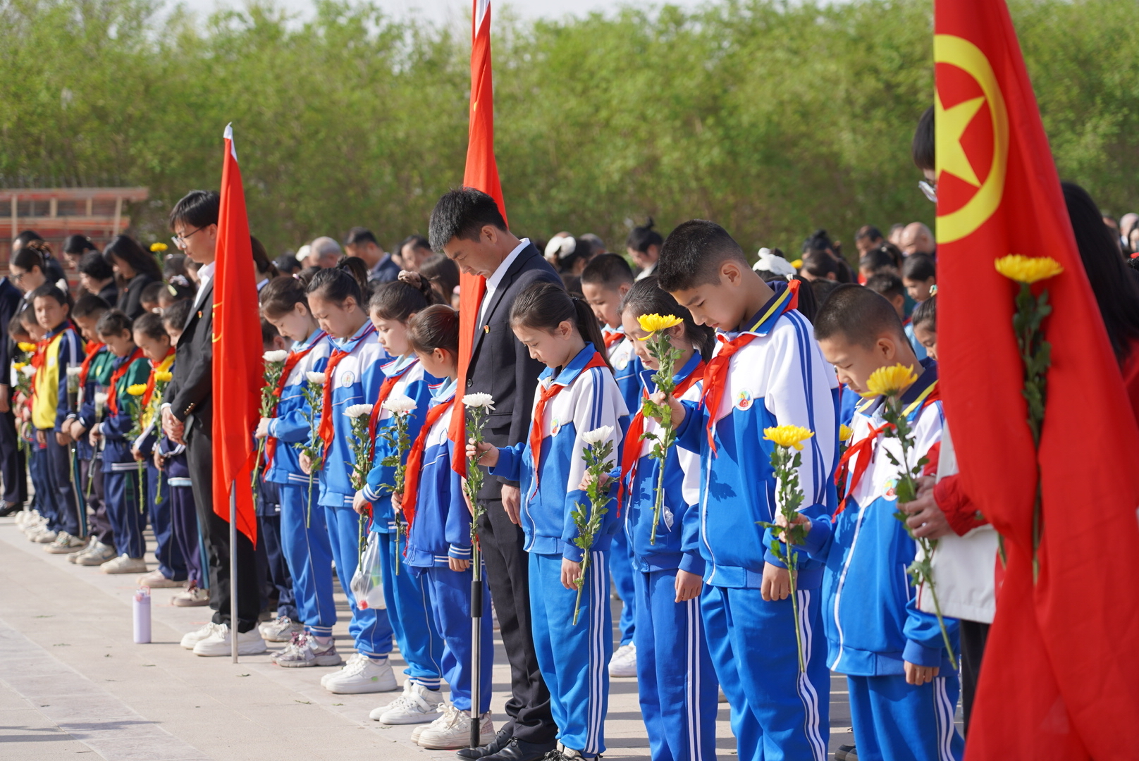 祭扫仪式在雄壮的《中华人民共和国国歌》声中正式开始。现场全体人员肃立,少先队员与干部代表神情庄重,向革命烈士纪念碑敬献花篮。随后,全场默哀三分钟,向为国家和人民献出宝贵生命的英烈致以最深切的哀悼。市关工委老干部结合革命先烈英雄事迹,开展爱国主义主题宣讲,一段段感人至深的历史故事,让在场人员深受教育和洗礼,更加深刻地感悟到革命先烈的赤诚与担当。