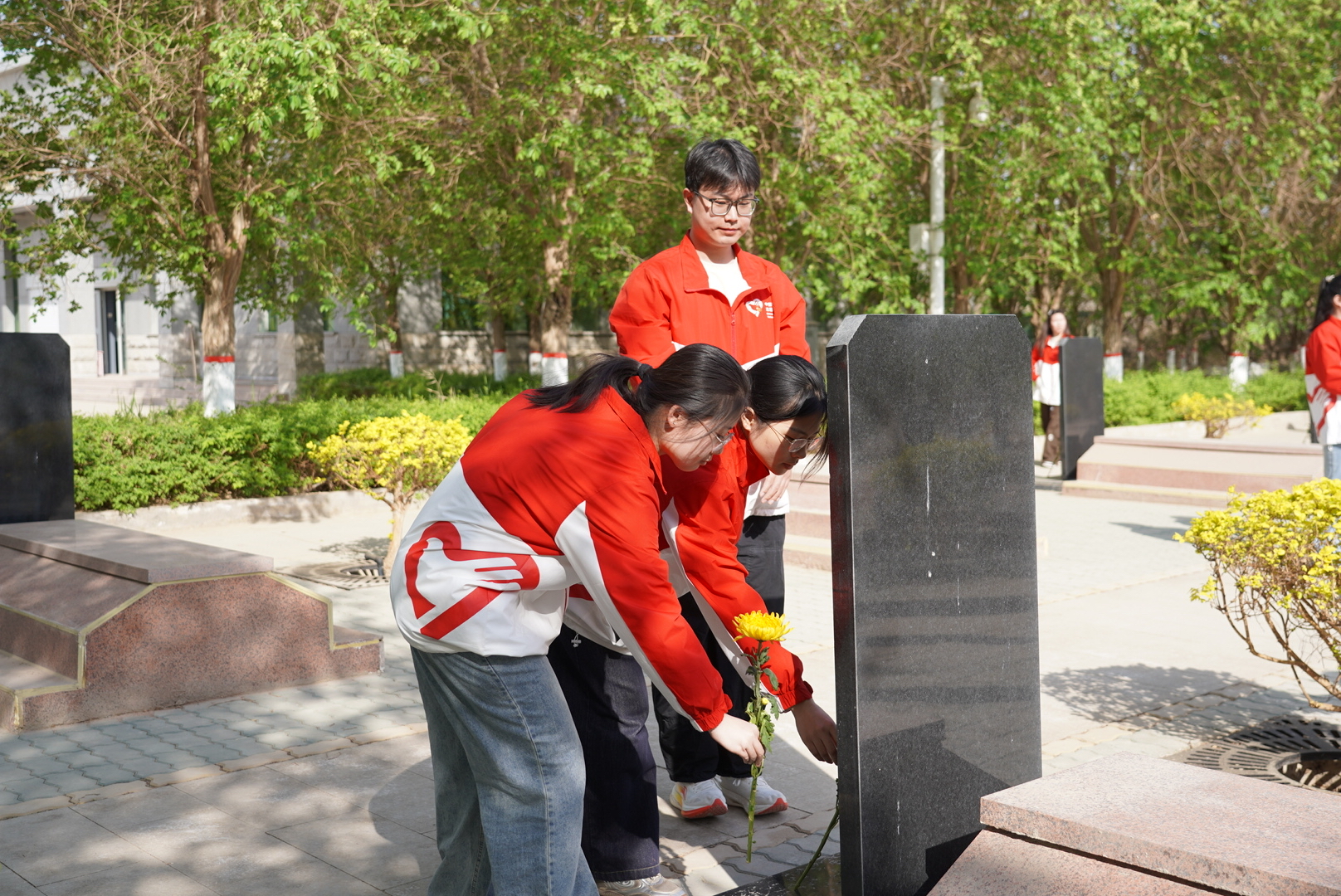 宣讲结束后,全体人员手持鲜花,依次走到烈士墓碑前敬献,并细心地擦拭墓碑,以实际行动表达对先烈的无限哀思与崇高敬意。最后,大家一同参观了烈士纪念馆,通过珍贵的历史文物和影像资料,直观感受先烈们不顾个人安危、出生入死、抛头颅洒热血的英雄气概,追忆他们为国家事业建立的不朽功勋。