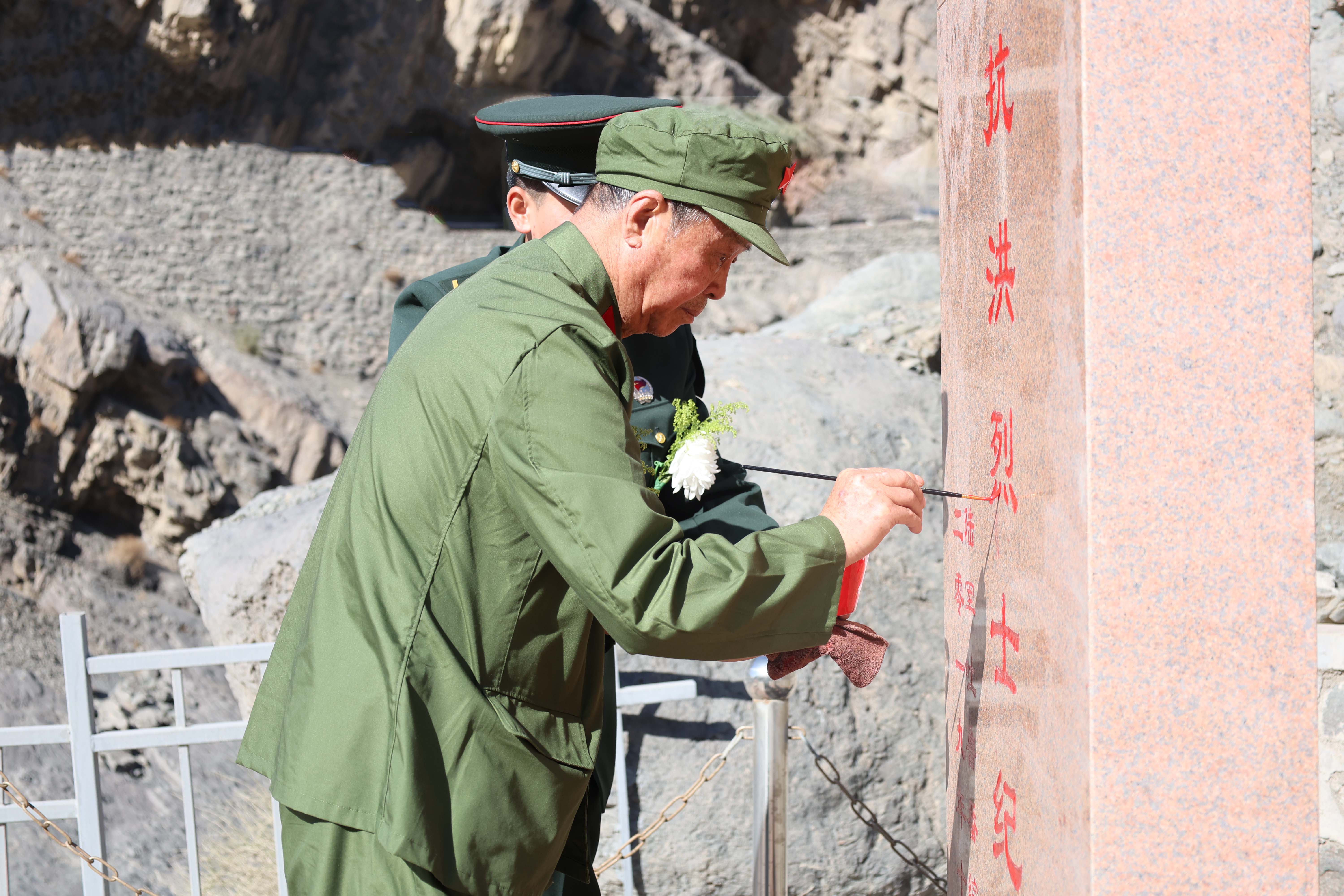 军休人员为烈士纪念碑描红。