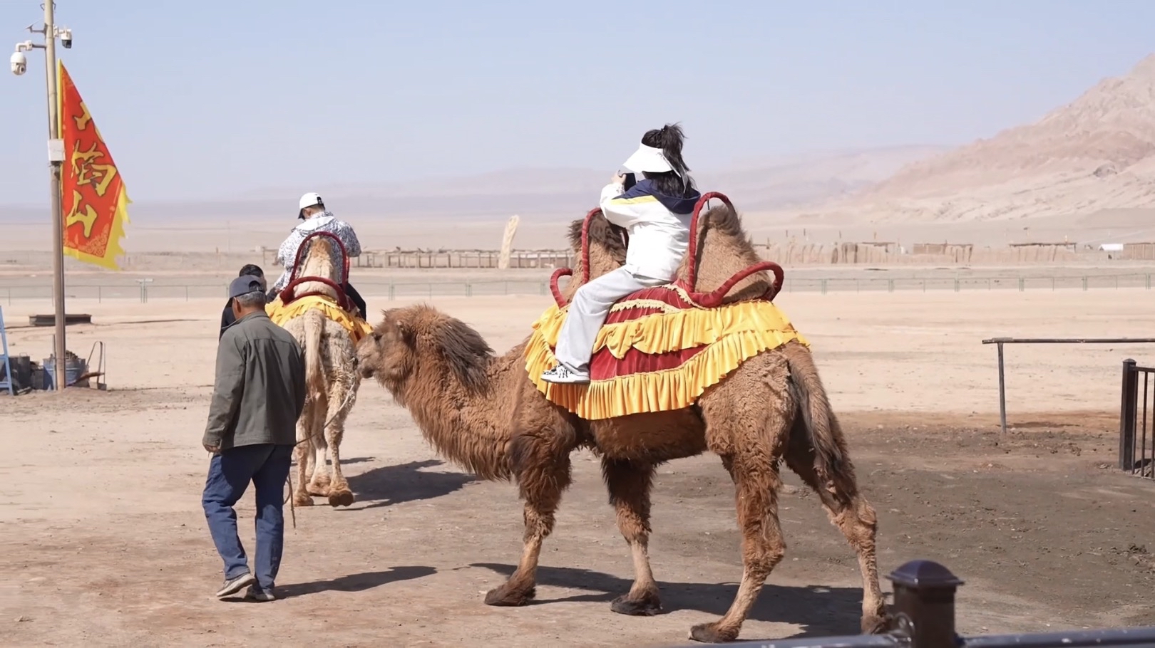游客在火焰山景区骑骆驼游玩。高昌区融媒体中心供图。
