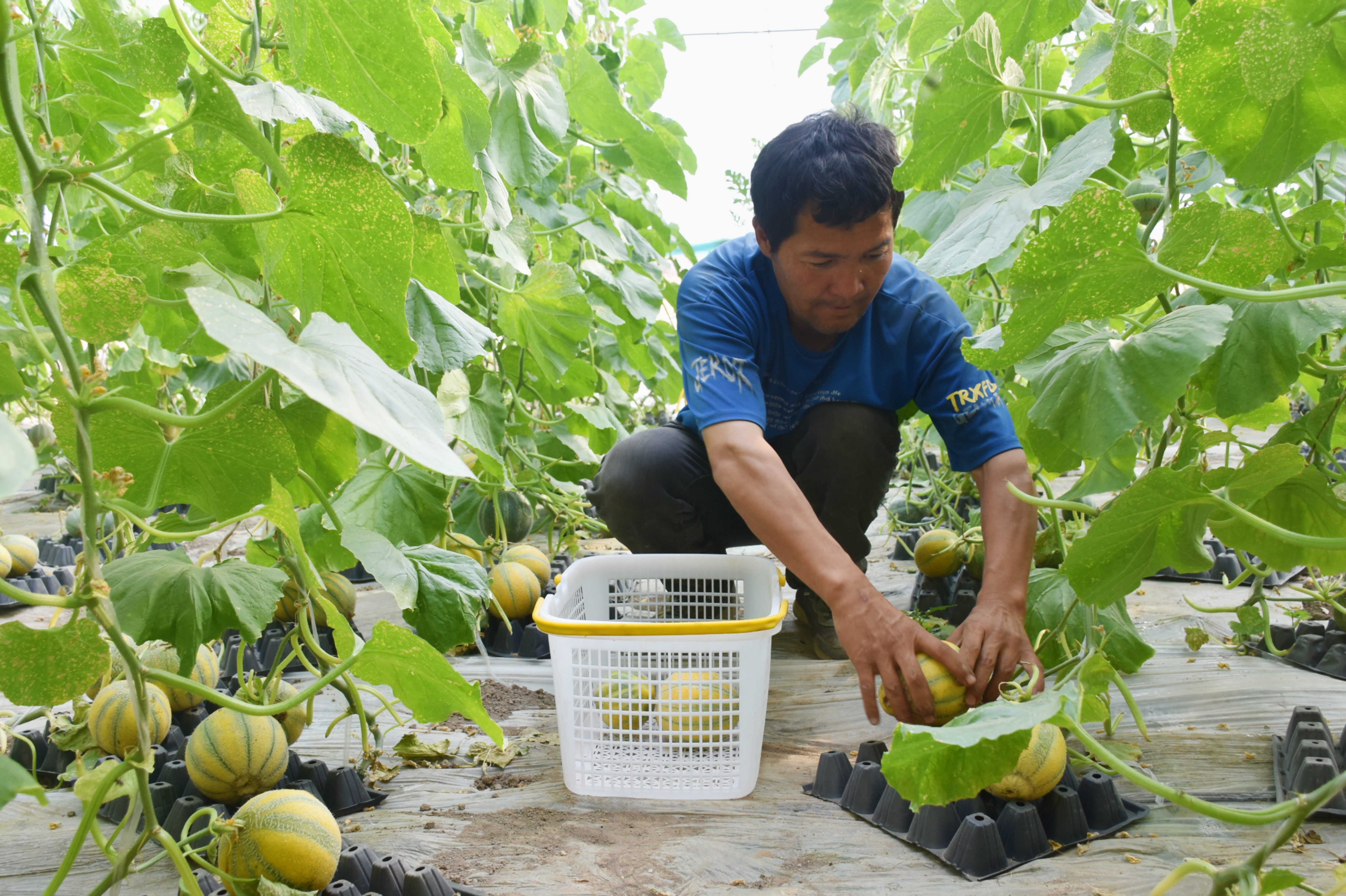 种植户在采摘小香瓜。吐鲁番市融媒体中心记者 加帕尔 摄