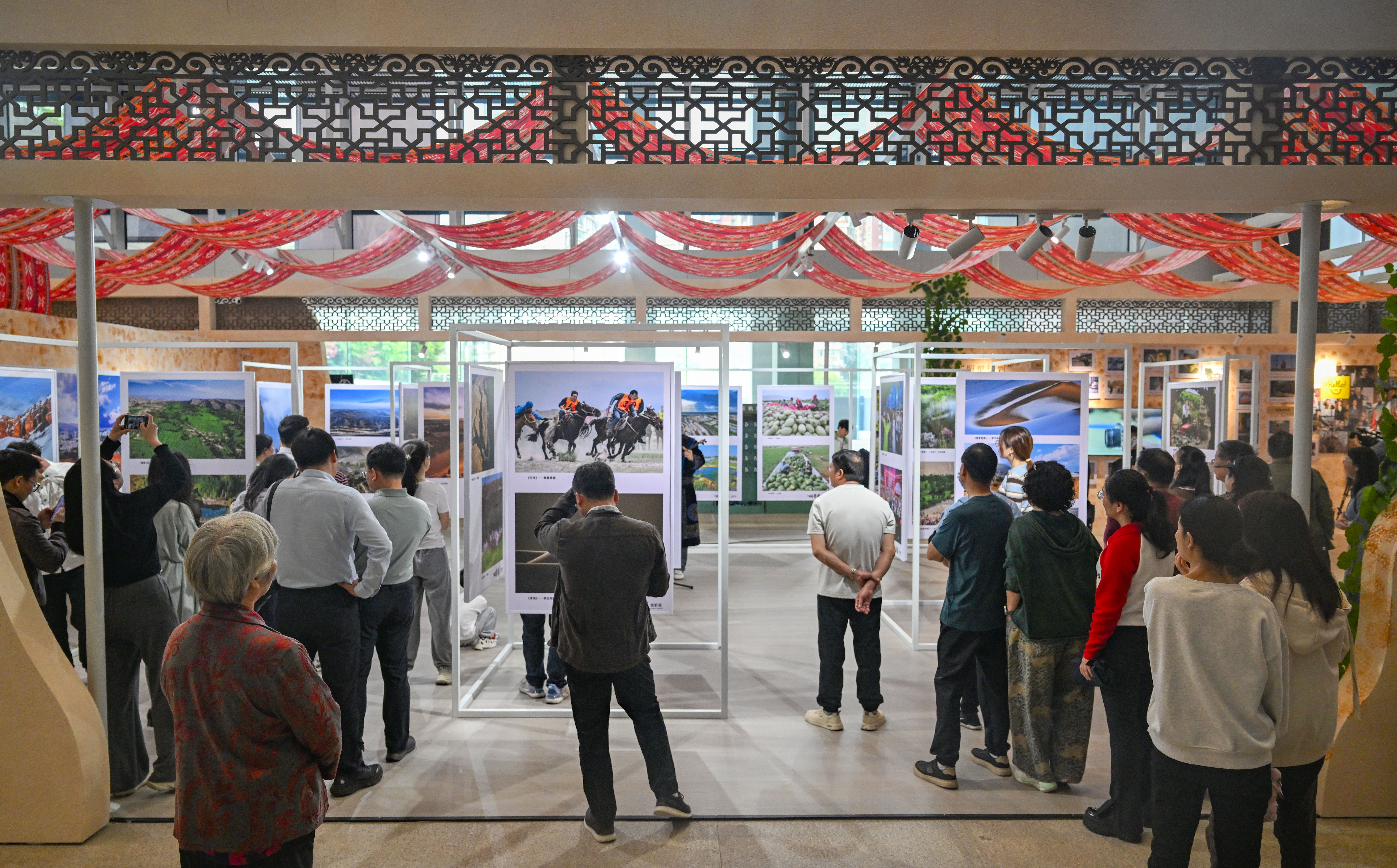 4月9日,长沙市民在湖南省博物馆参观“我的吐鲁番”摄影展。 湖南日报全媒体记者 郭立亮 摄