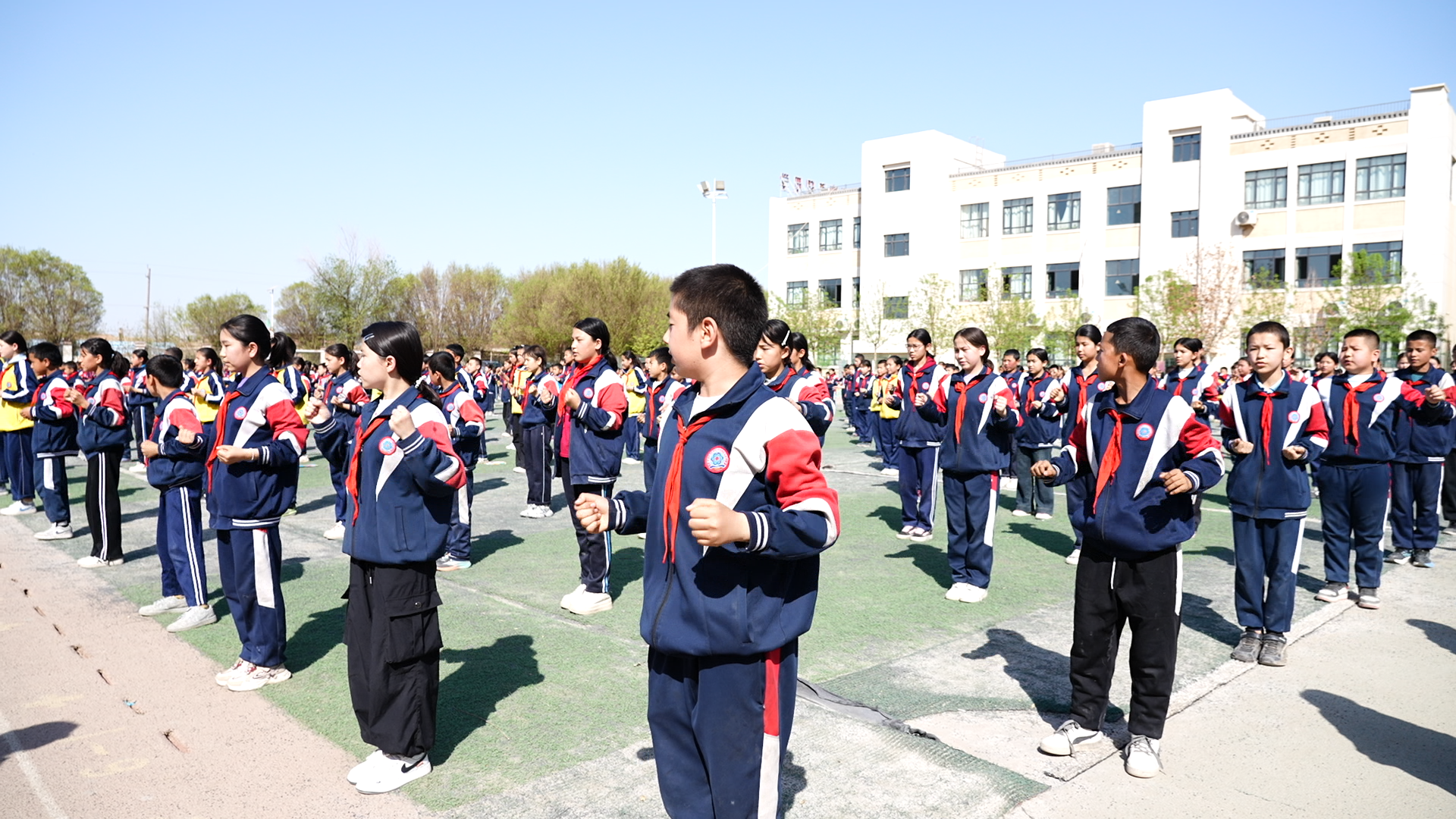 “和同学们一起做武术操特别开心,大家动作整齐、互相帮助,就像一家人一样。”五年级学生再努热·克然木说。在追求集体荣誉的过程中,个体差异融入集体和谐,每一次整齐的抬手投足都在强化“我们是一个整体”的归属感,让“民族团结一家亲”的理念深深扎根。