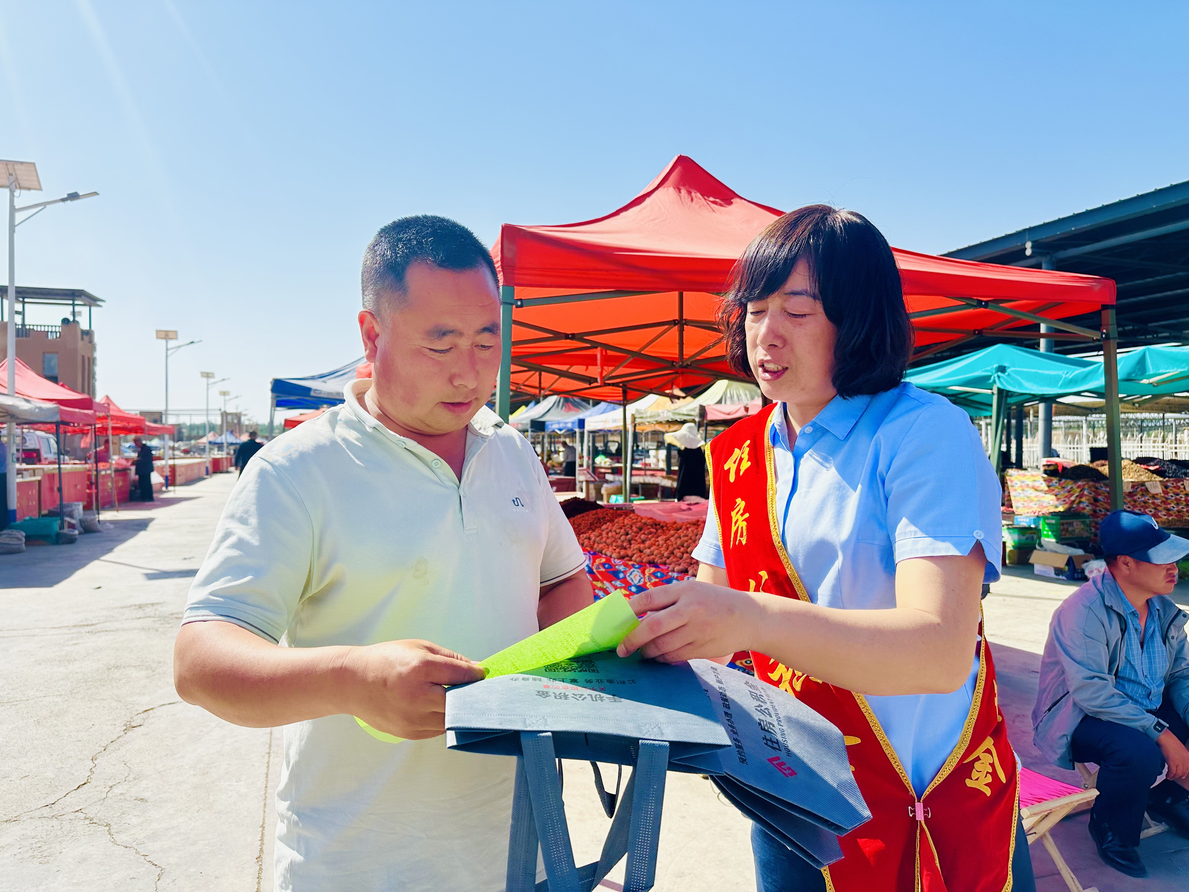 集市上前来咨询的群众络绎不绝,工作人员专业耐心的解答赢得现场一致点赞。市民伊丽姆努尔·阿布都拉说:“没想到公积金政策这么惠民,灵活就业也能缴存,还能申请贷款,解决了我们想买房的大难题,服务送到巴扎里,太贴心、太便民了!”