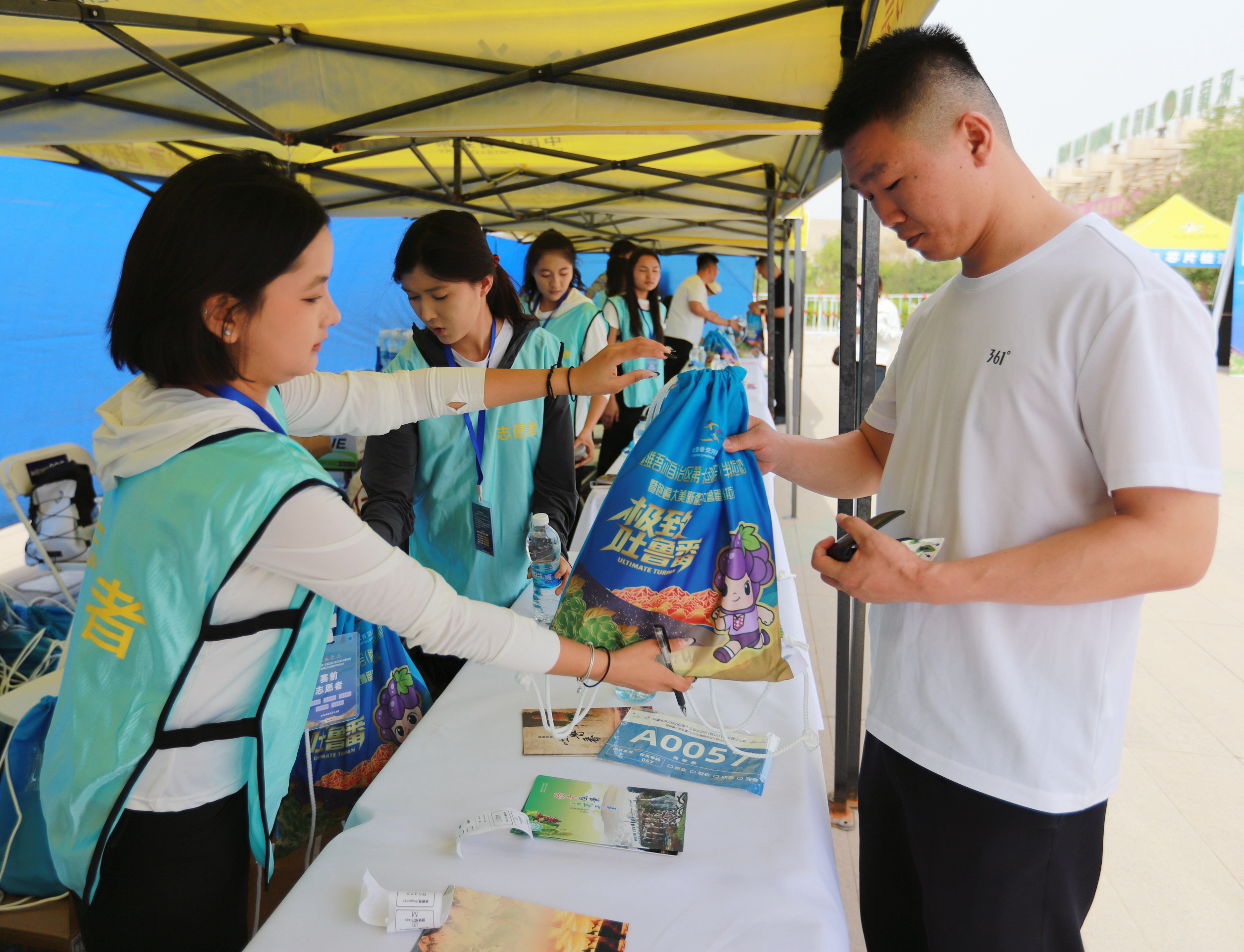 参赛选手领取物资包。吐鲁番市融媒体中心讯记者 金颖 摄