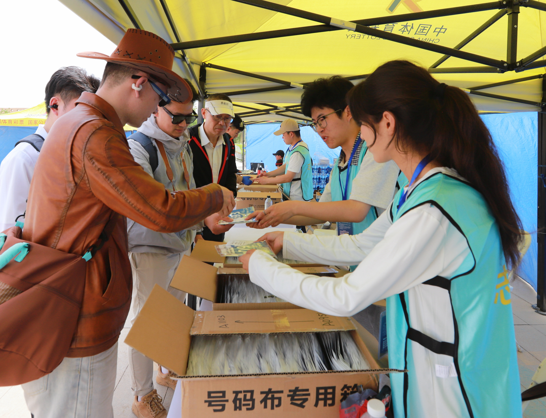 参赛选手领取号码布。吐鲁番市融媒体中心讯记者 金颖 摄