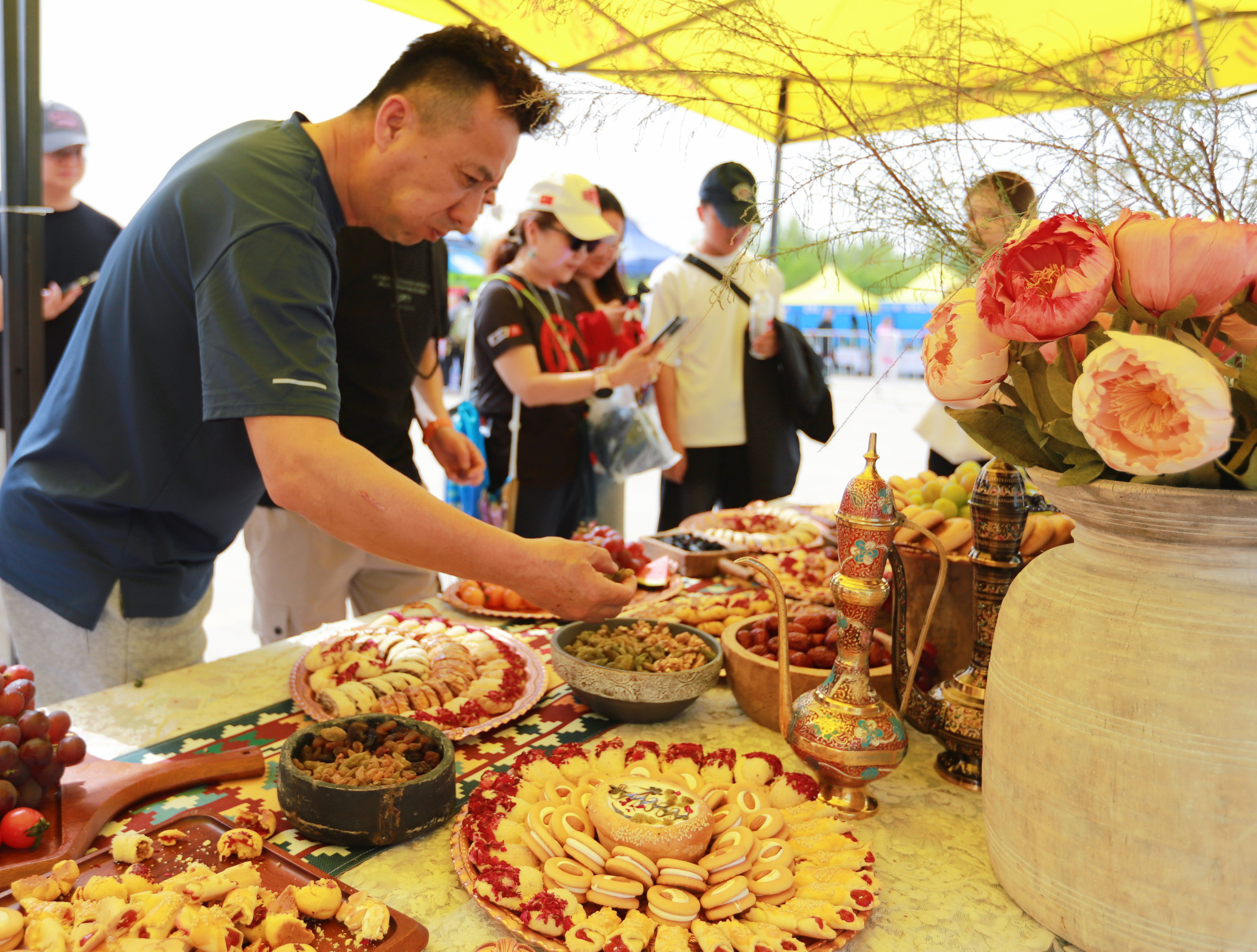 2026吐鲁番交河半程马拉松领物现场,吐鲁番下午茶惊艳亮相。吐鲁番市融媒体中心讯记者 金颖 摄