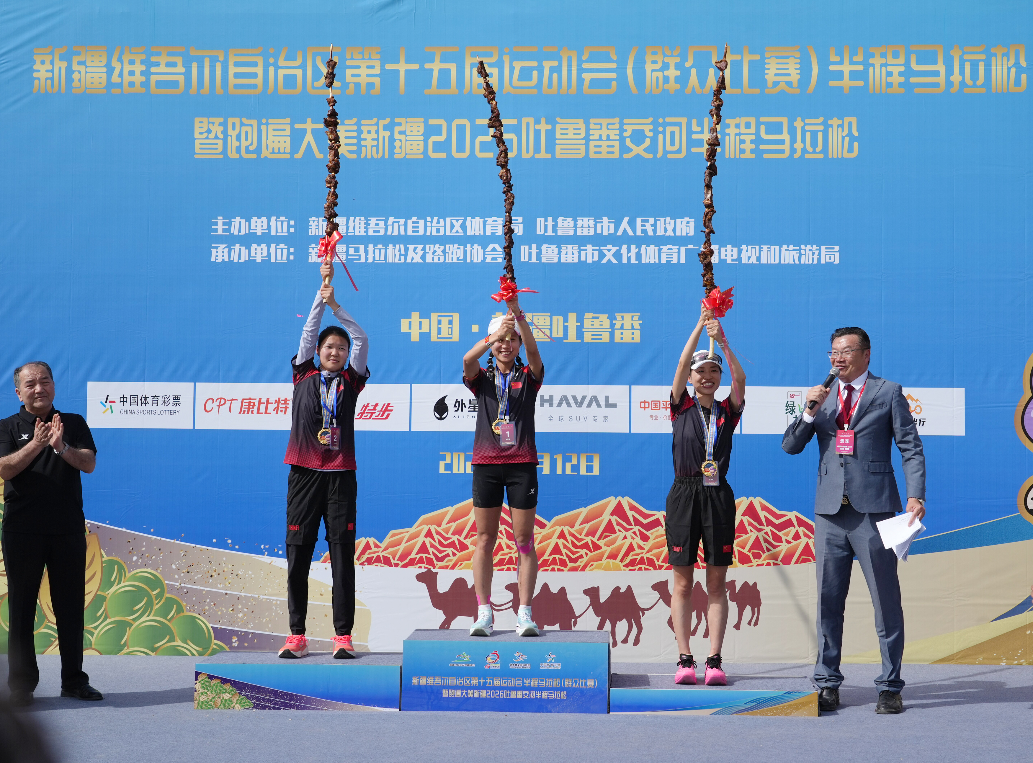 吐鲁番市融媒体中心讯(记者 刘字昂 李彦强)4月12日上午9时30分,随着一声清脆的发令枪响,新疆维吾尔自治区第十五届运动会(群众比赛)半程马拉松暨跑遍大美新疆2026吐鲁番交河半程马拉松在葡萄沟游客服务中心正式鸣枪开跑。3000名专业选手齐聚“丝路明珠”,在这条中国海拔最低的赛道上,挥洒汗水、奋勇争先,切身感受“人生须尽欢 极致吐鲁番”的独特魅力与时代活力。市委常委、宣传部部长许国东出席活动。
