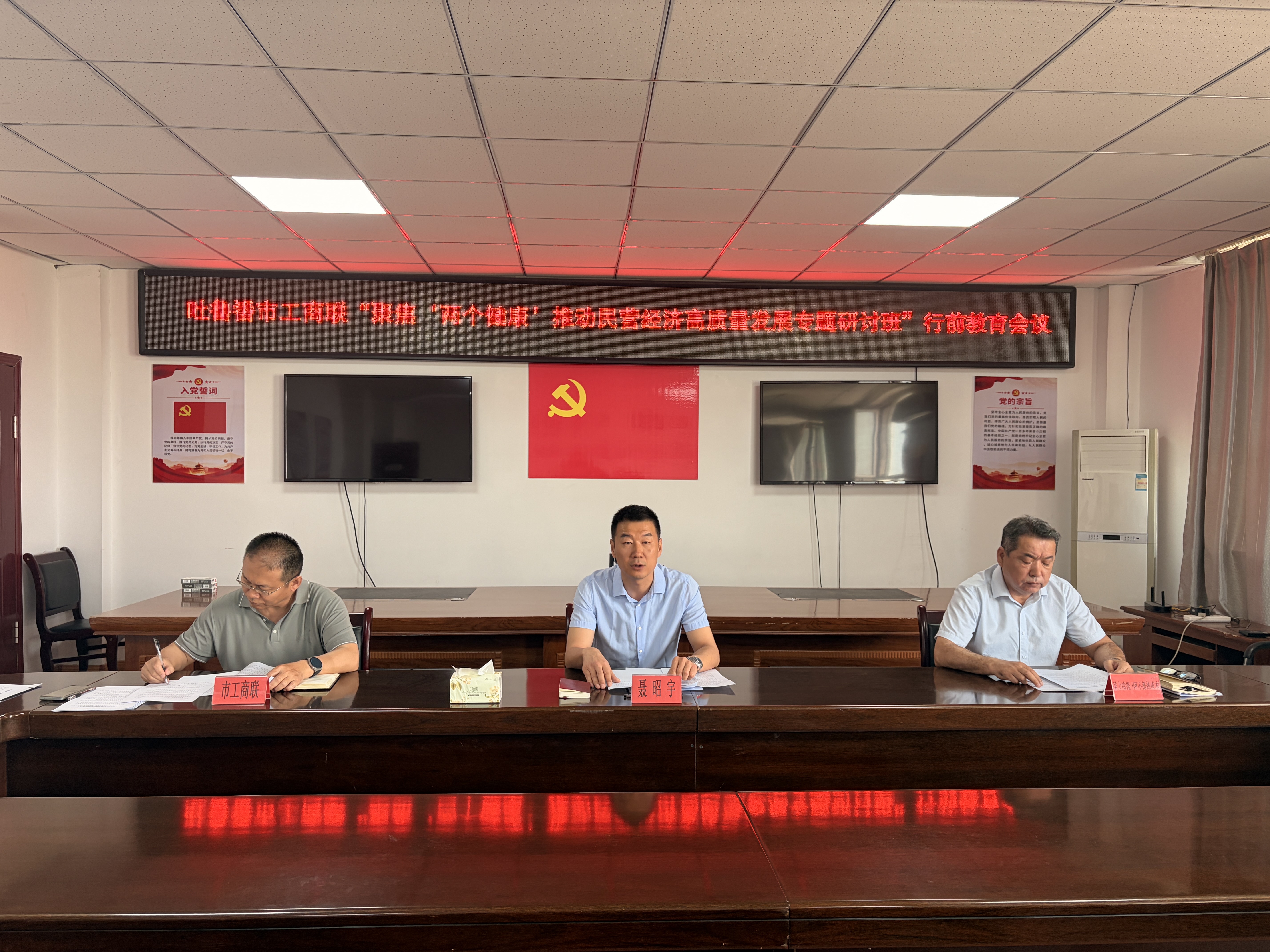 吐鲁番市融媒体中心讯(文/图 记者 阿丽亚)4月10日,吐鲁番市工商联组织即将赴湖南大学参加“聚焦‘两个健康’推动民营经济高质量发展专题研讨班”全体学员,开展行前集中培训。