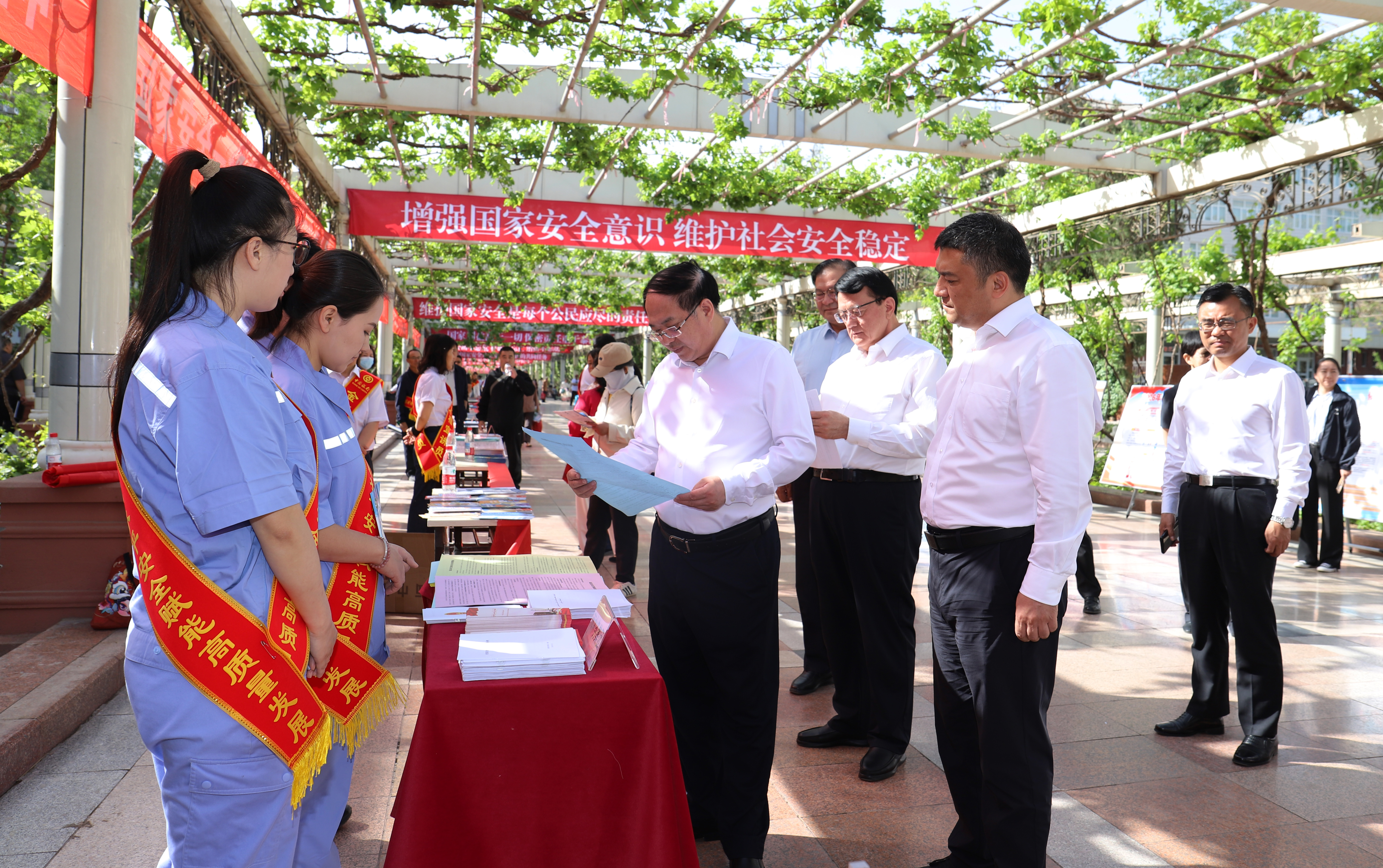活动现场氛围热烈,主题展板图文并茂、互动体验生动有趣,工作人员向过往群众发放宣传手册、讲解典型案例,全面解读各领域安全知识,吸引众多市民驻足参与。文天平、西尔艾力・外力等市领导一同参观“统筹发展和安全 护航‘十五五’新征程”主题展览,深入普法宣传展位与工作人员深入交流,详细了解宣传内容、活动组织及群众参与情况。文天平强调,国家安全是安邦定国的重要基石。今年是“十五五”开局之年,做好国家安全工作意义重大、责任重大,全市上下要深入学习贯彻总体国家安全观,坚持统筹发展和安全两件大事,以此次全民国家安全教育日活动为契机,深化国家安全宣传普及,丰富宣传载体,开展形式多样、群众喜闻乐见的宣传活动,引导广大干部群众自觉履行维护国家安全的法定义务,主动排查身边安全隐患,争做国家安全的守护者、传播者、践行者,持续提升全民国家安全意识和素养。