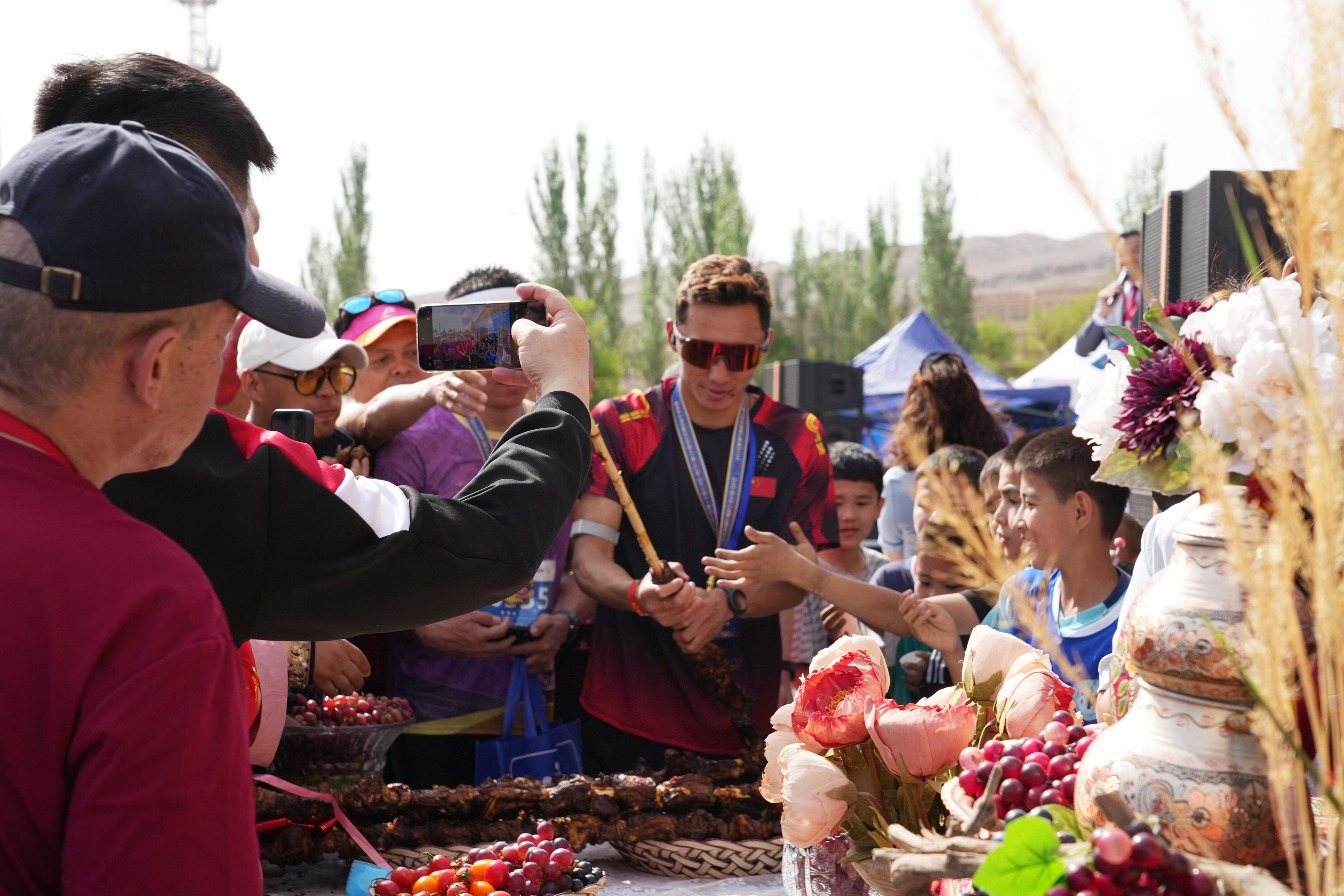 保障体系严密细致。2000名志愿者、医护人员、公安民警经系统培训后上岗,沿途每隔数百米设置补给站点,医疗保障团队制定专项防暑降温方案,配齐降温海绵、冰袋及各类急救设备。赛道沿线,闻讯而来的观众成为亮丽风景线。在距离终点200米处,一名小男孩奋力与选手击掌鼓劲,正是吐鲁番真诚与热情的生动缩影。参赛选手张全新深有感触地说:“在挑战极限的同时,也真切感受到了吐鲁番这座城市的热情与细致。”