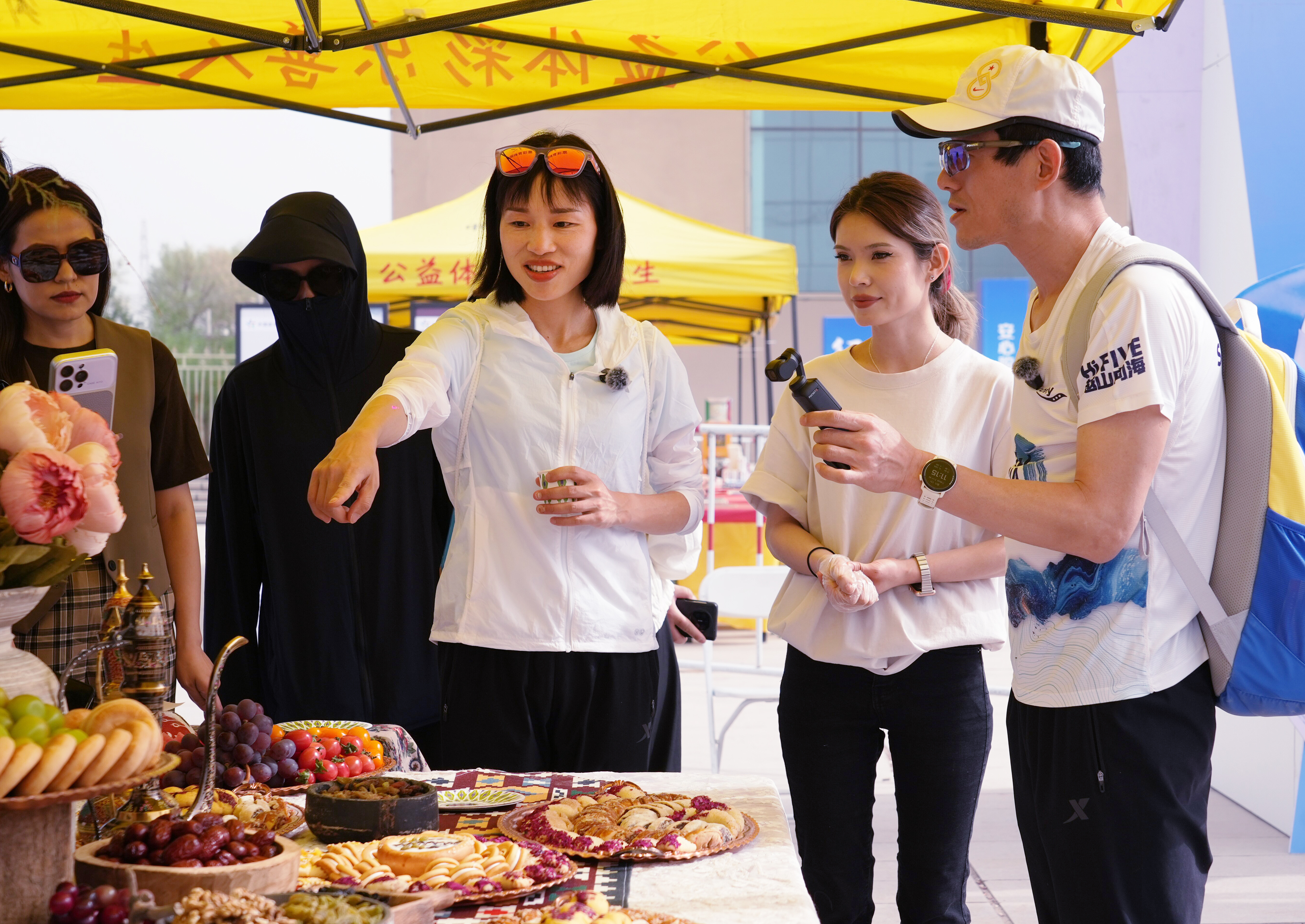 视觉IP先声夺人。从物料领取现场到赛段终点,专属IP“葡萄小精灵”随处可见,融入了葡萄藤、火焰山、交河故城等元素。味蕾盛宴独具匠心,赛道中途设置的“吐鲁番极致下午茶”沉浸式体验区成为爆款,各类药茶、干果、鲜果、糕点等本地特色美食无限量供应。参赛选手陈春品尝后赞不绝口:“薄荷茶解暑,哈密瓜甜脆,这种补给方式太‘吐鲁番’了!”