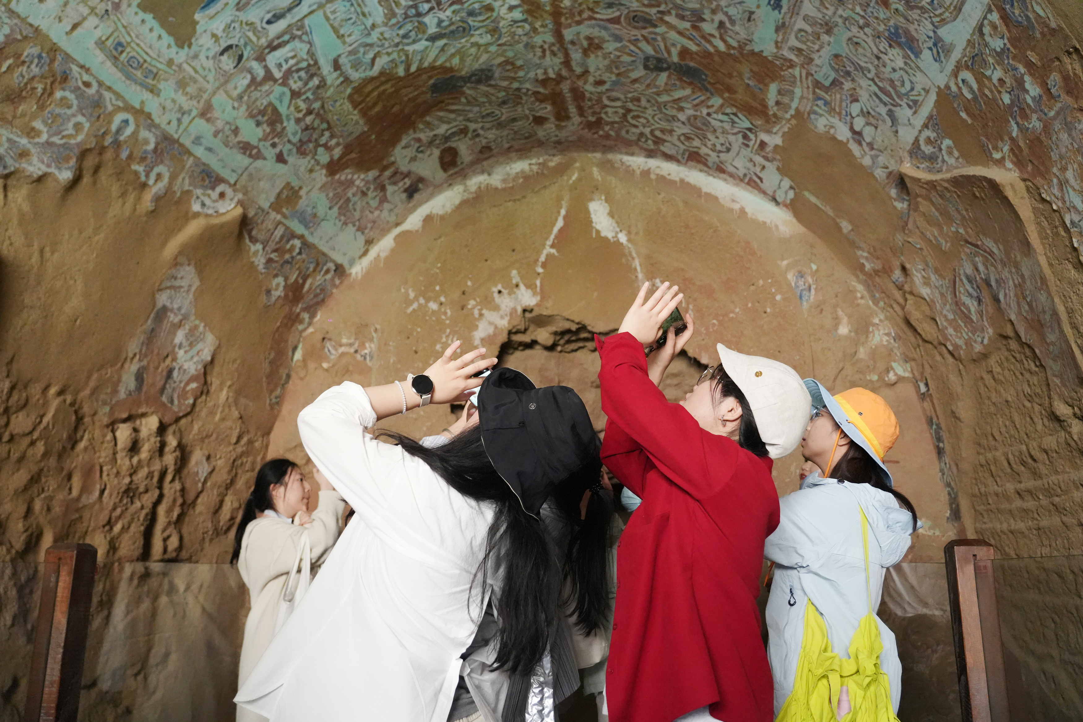 参加工作坊的硕博士生在柏孜克里克千佛洞参观考察。吐鲁番市融媒体中心记者 刘字昂 摄