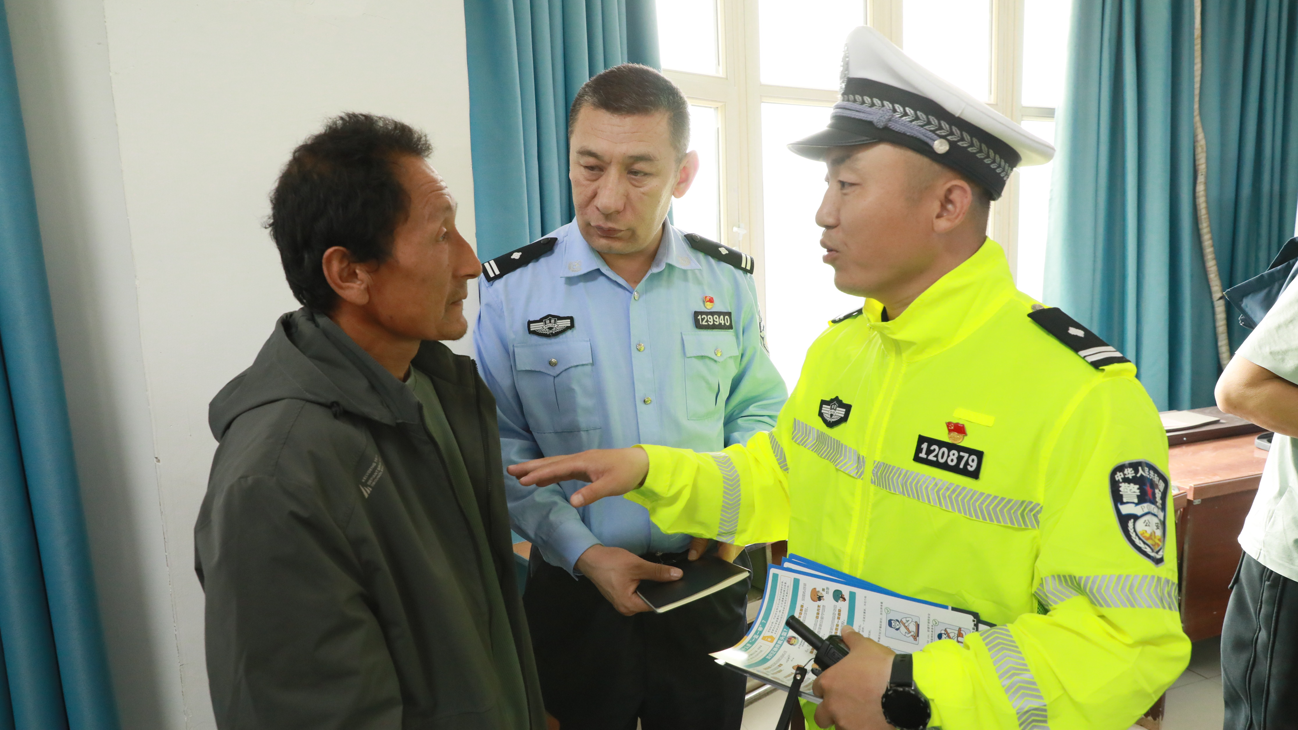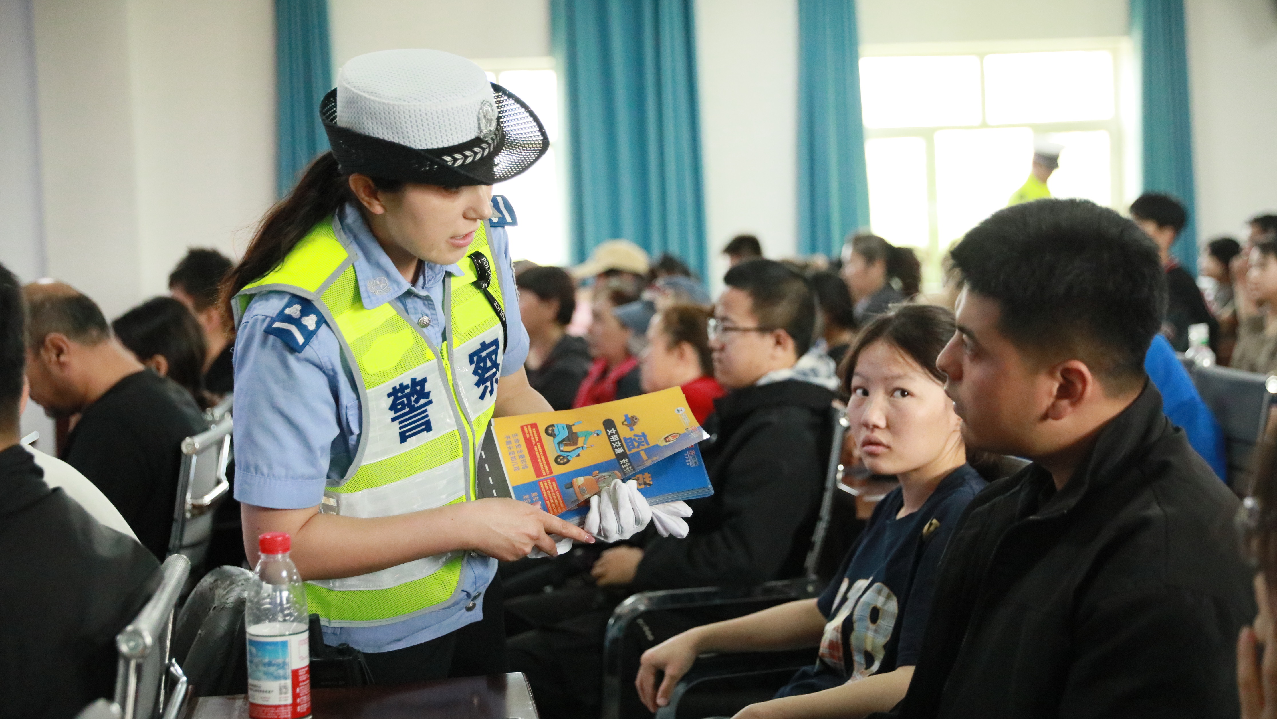 民警向群众宣讲交通安全知识。