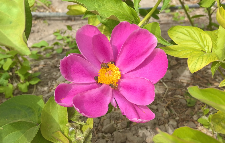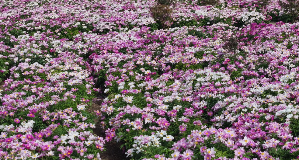 该基地共种植各类花卉400余亩,其中芍药300多亩,还搭配种植了丹麦翠菊、国庆菊、月季、郁金香、四季玫瑰、红叶榆叶梅等共100亩,每亩综合产值可达10万元。花期自4月下旬至5月中旬,约15至20天,日均吸引游客2000人左右,带动周边餐饮、住宿等关联消费。目前,基地已形成“赏花+根茎入药+花籽榨油”的复合收益模式,并在当地推广。