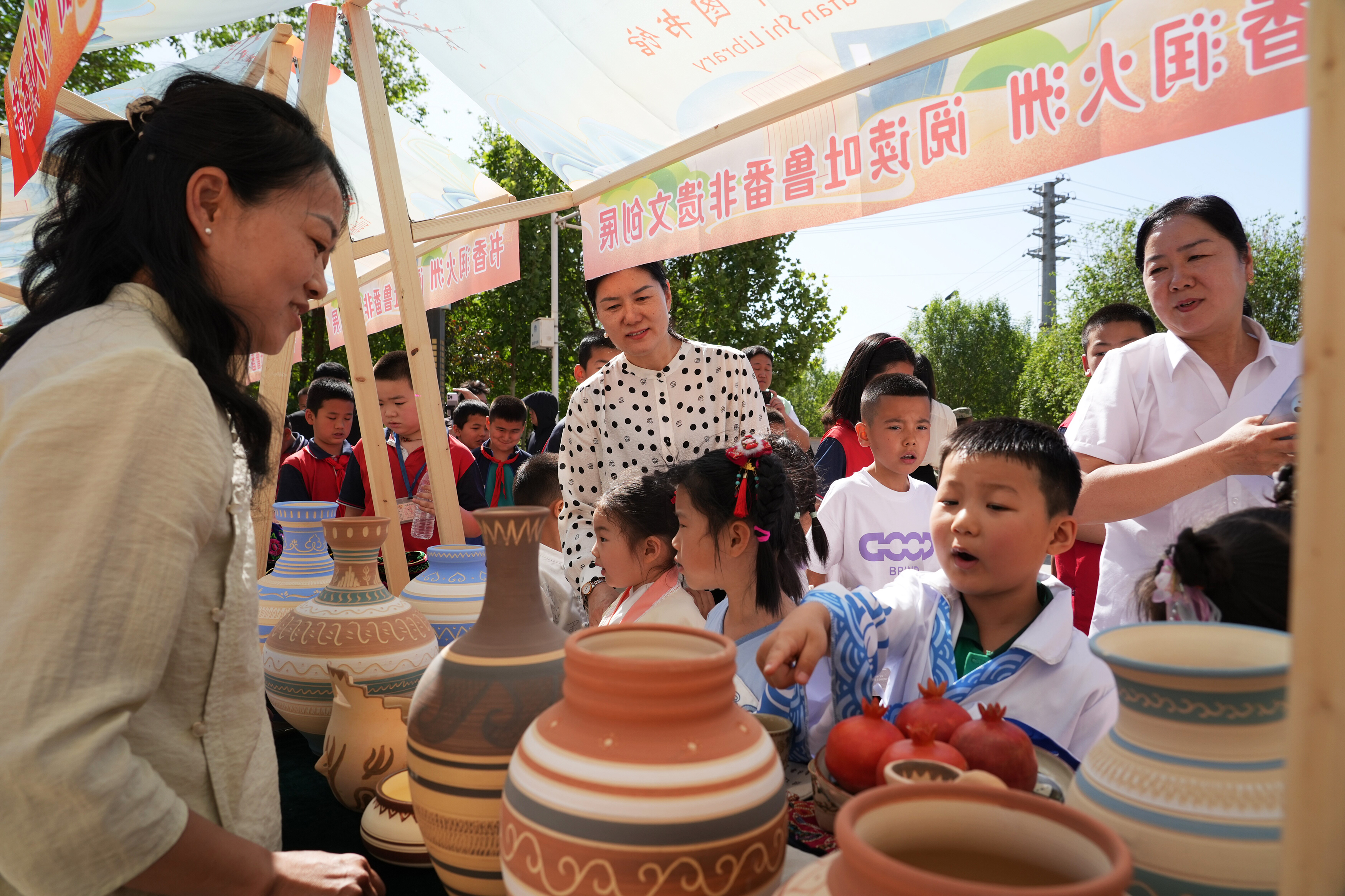 活动现场同步设置文旅融合体验区,非遗及文创集市集中展示吐鲁番特色文化产品,“四季童读”春季卷展览与近三届“文津图书奖”获奖图书专架,吸引众多读者驻足。此外,“丝路明珠·火洲讲坛”——典籍里的中国智慧主旨讲座、AI人工智能科普讲座、航空航天及无人机足球体验等科普阅读推广活动也一并开展。