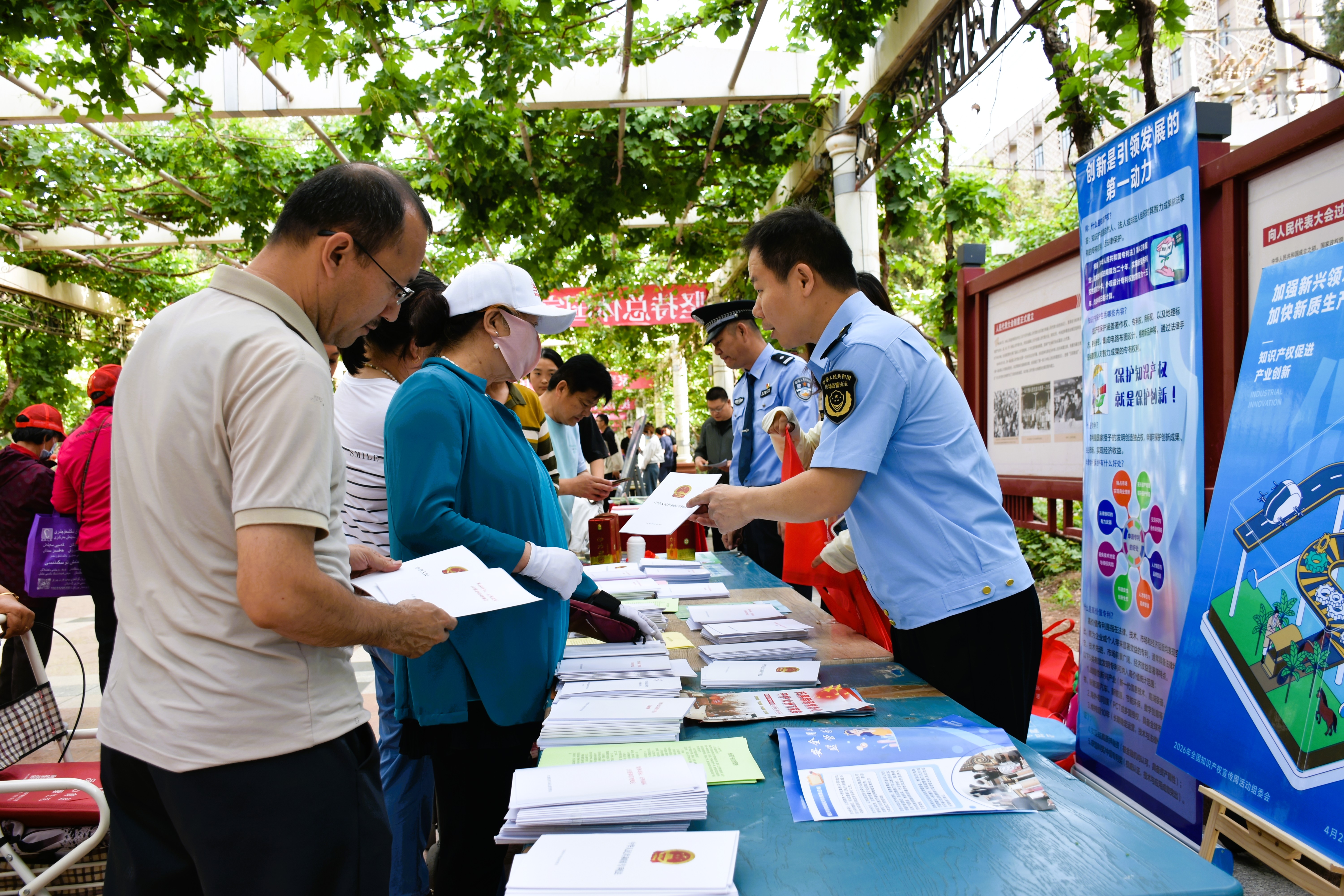 工作人员向群众宣传知识产权保护相关法律法规。 吐鲁番市融媒体中心记者 加帕尔 摄
