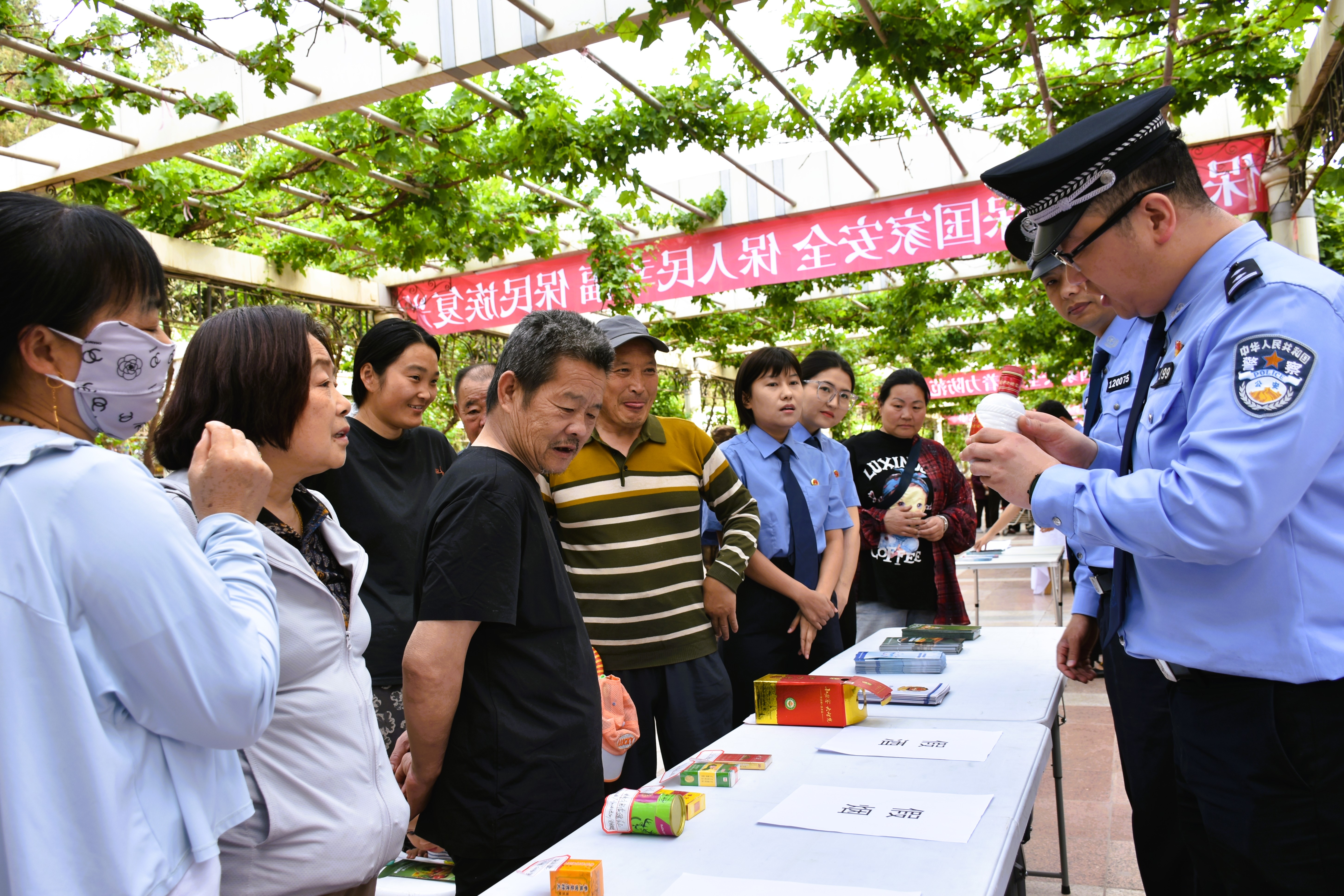 公安民警向群众普及真假商标及产品辨别知识。 吐鲁番市融媒体中心记者 加帕尔 摄