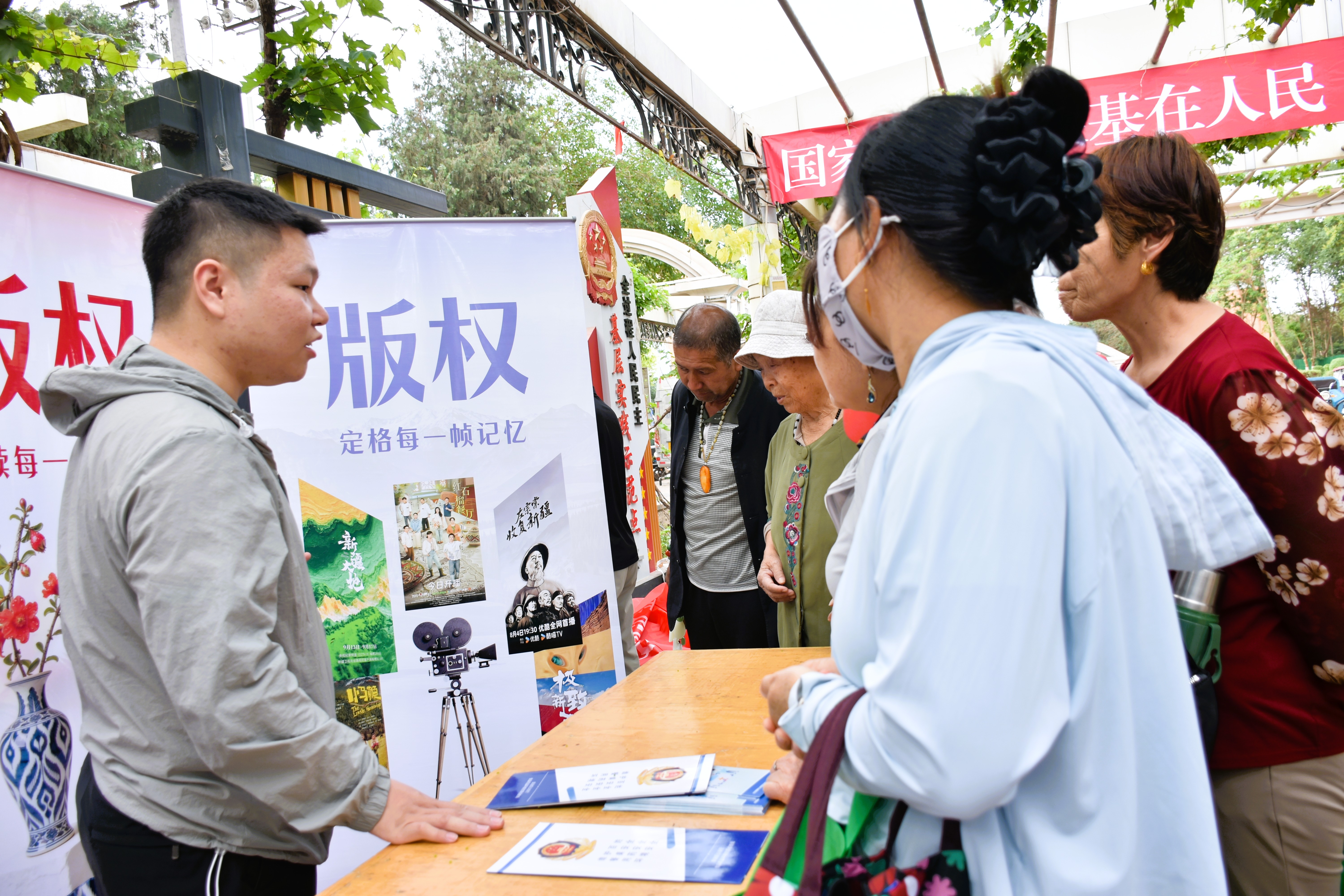 工作人员向群众普及版权保护相关法律法规。 吐鲁番市融媒体中心记者 加帕尔 摄