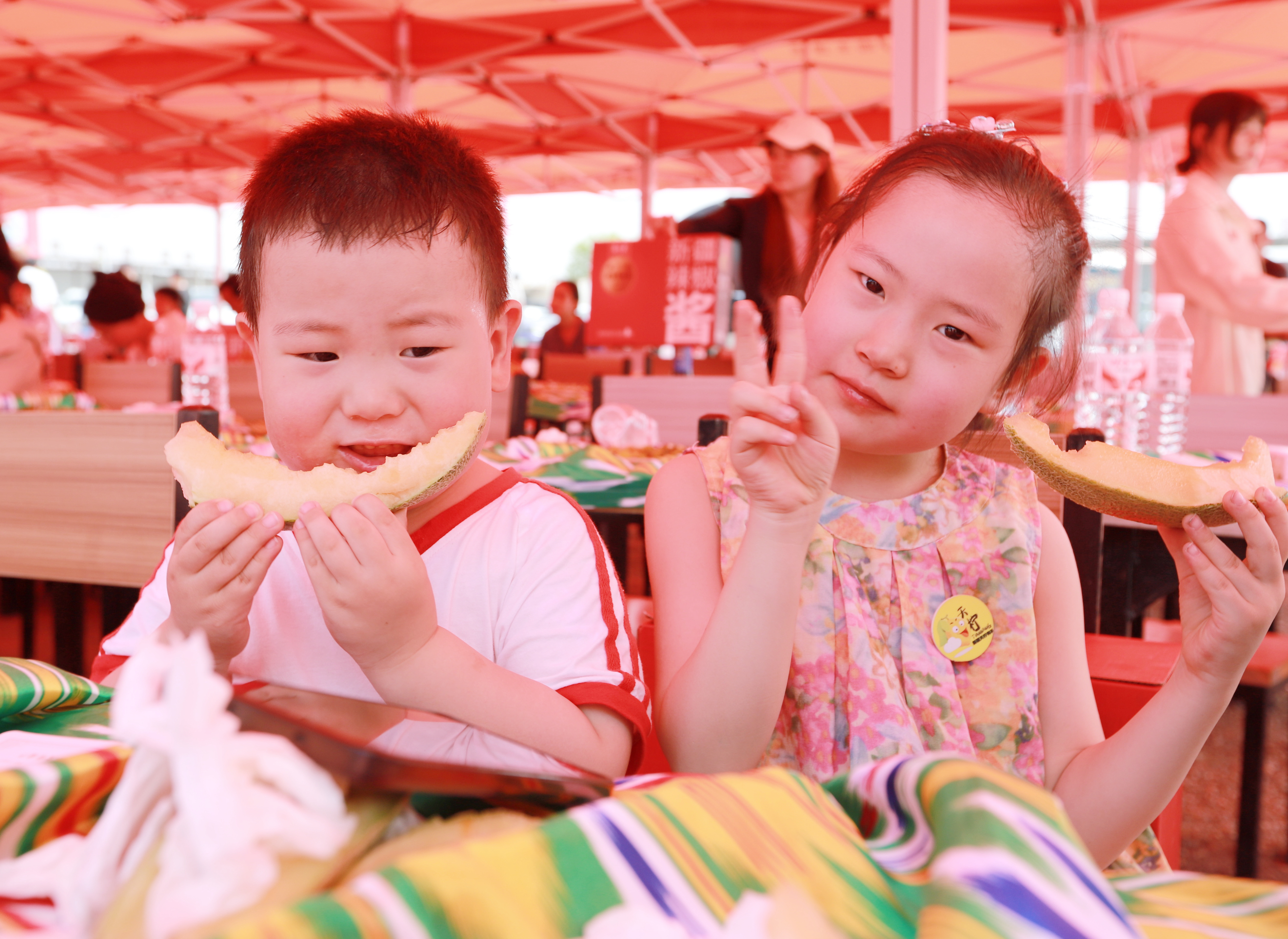 活动现场小朋友品尝初玉蜜瓜。吐鲁番市融媒体中心记者 金颖摄