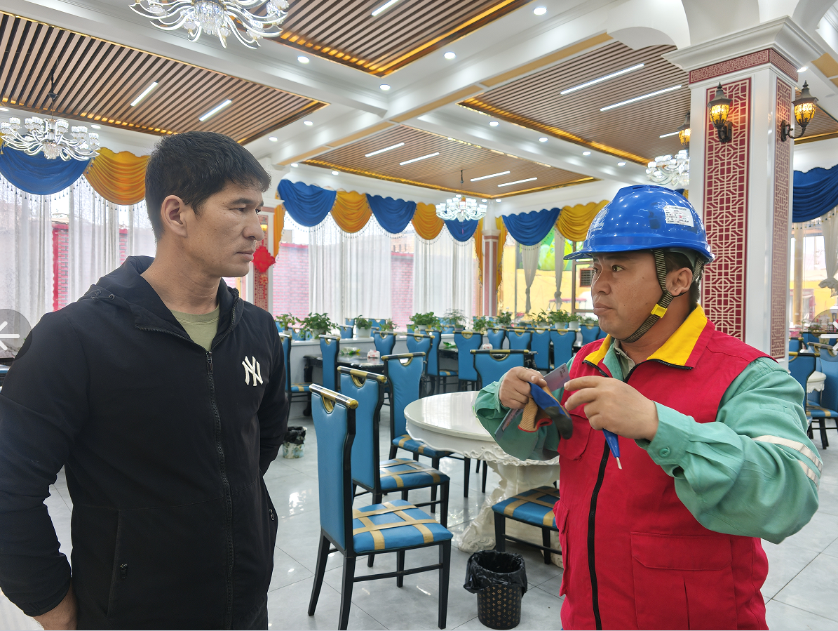 吐鲁番市融媒体中心讯(文/图 通讯员 朱敏 谷碧娇)4月24日,吐鲁番市火焰山古丽孜拜黄面烤肉店负责人艾合买提·托乎提,对上门检查线路和照明设备的国网吐鲁番供电公司员工感慨道:“多亏你们提前检查,‘五一’食客增多我们也不担心用电问题。”